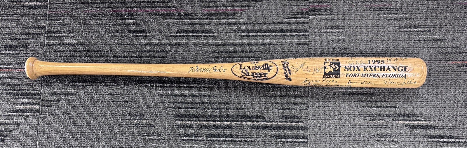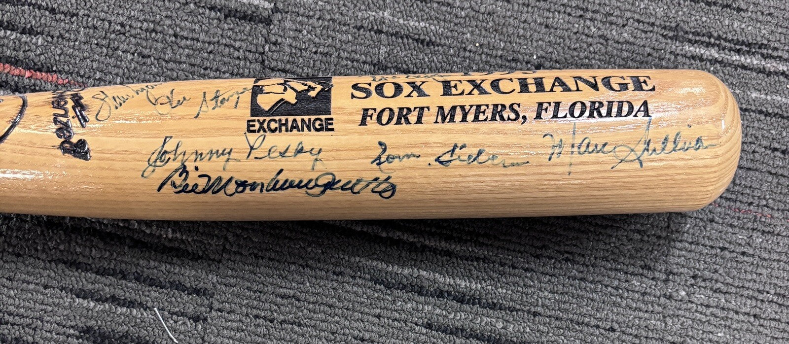 1995 Sox Exchange Fantasy Camp Signed Baseball Bat Johnny Pesky Gary Bell Etc.