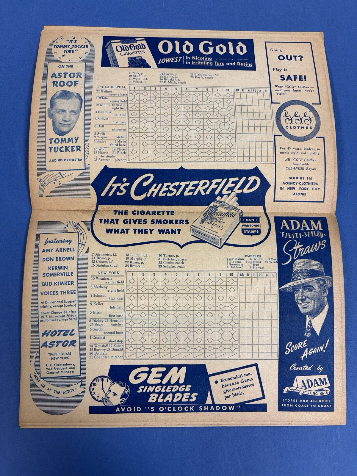 1943 Yankees Scorecard Program Philadelphia Vs New York Not Scored