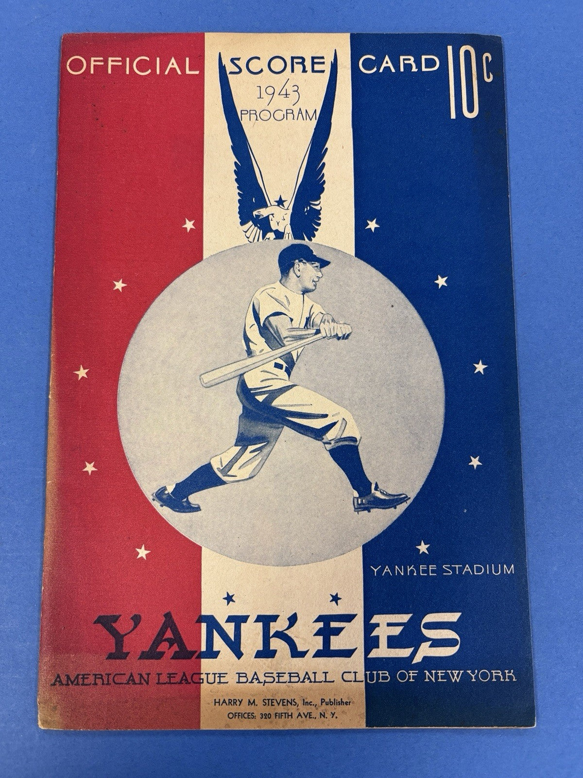 Step back in time with this authentic 1943 Yankees scorecard program, a genuine piece of baseball history. Featuring the highly anticipated game between the Philadelphia Phillies and the New York Yankees, this program offers a unique glimpse into America's favorite pastime during a pivotal era in our nation's history. Program is in good condition and hasn’t been scored.