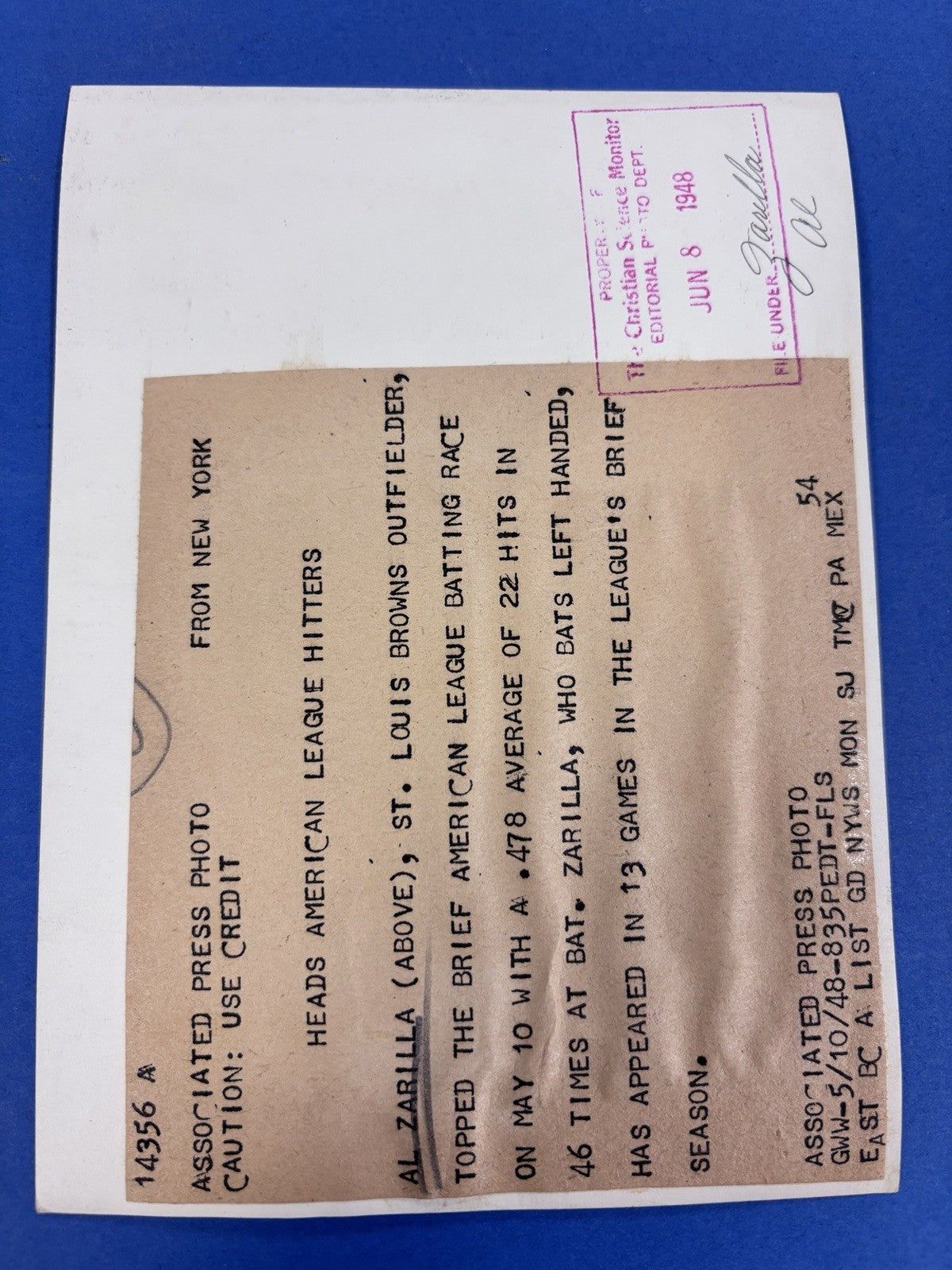 1948 Al Zarilla Original 5x7 Newspaper Wire Photo St. Louis Browns