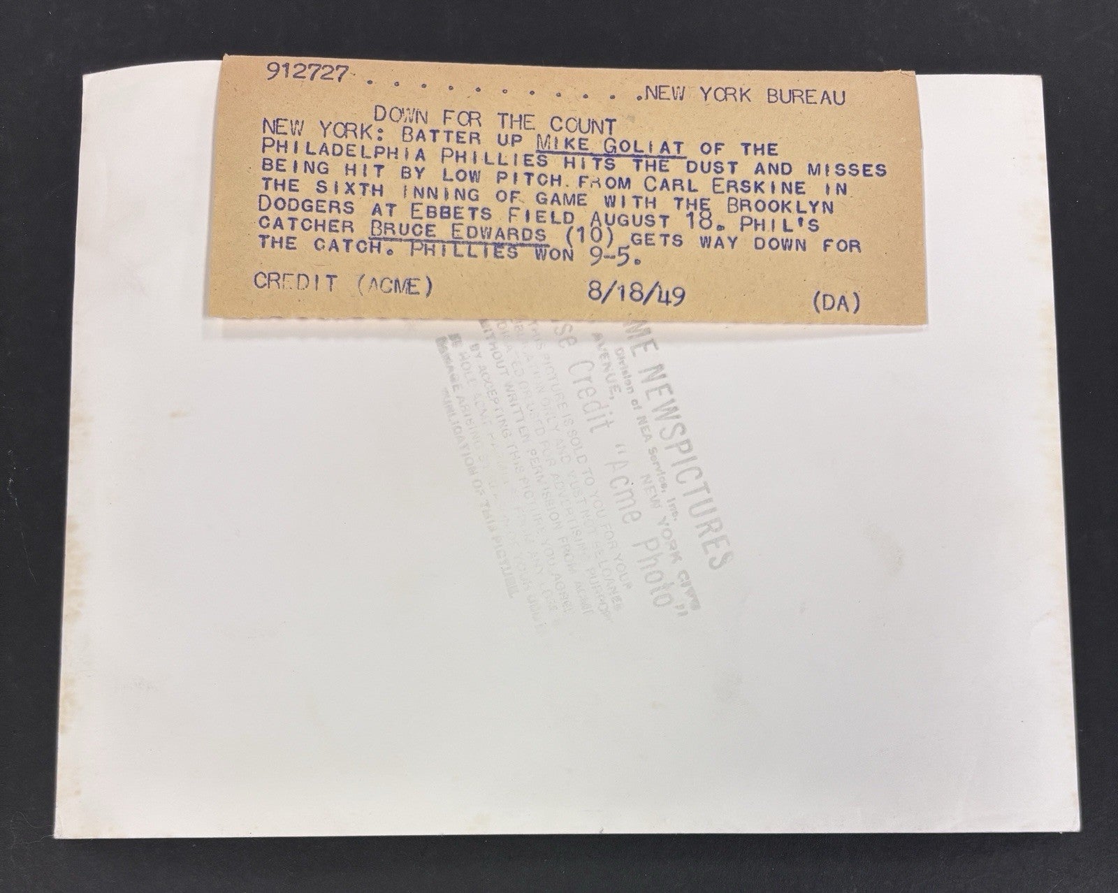 1949 Original 7x9 Newspaper Wire Photo Mike Goliat Philadelphia Phillies