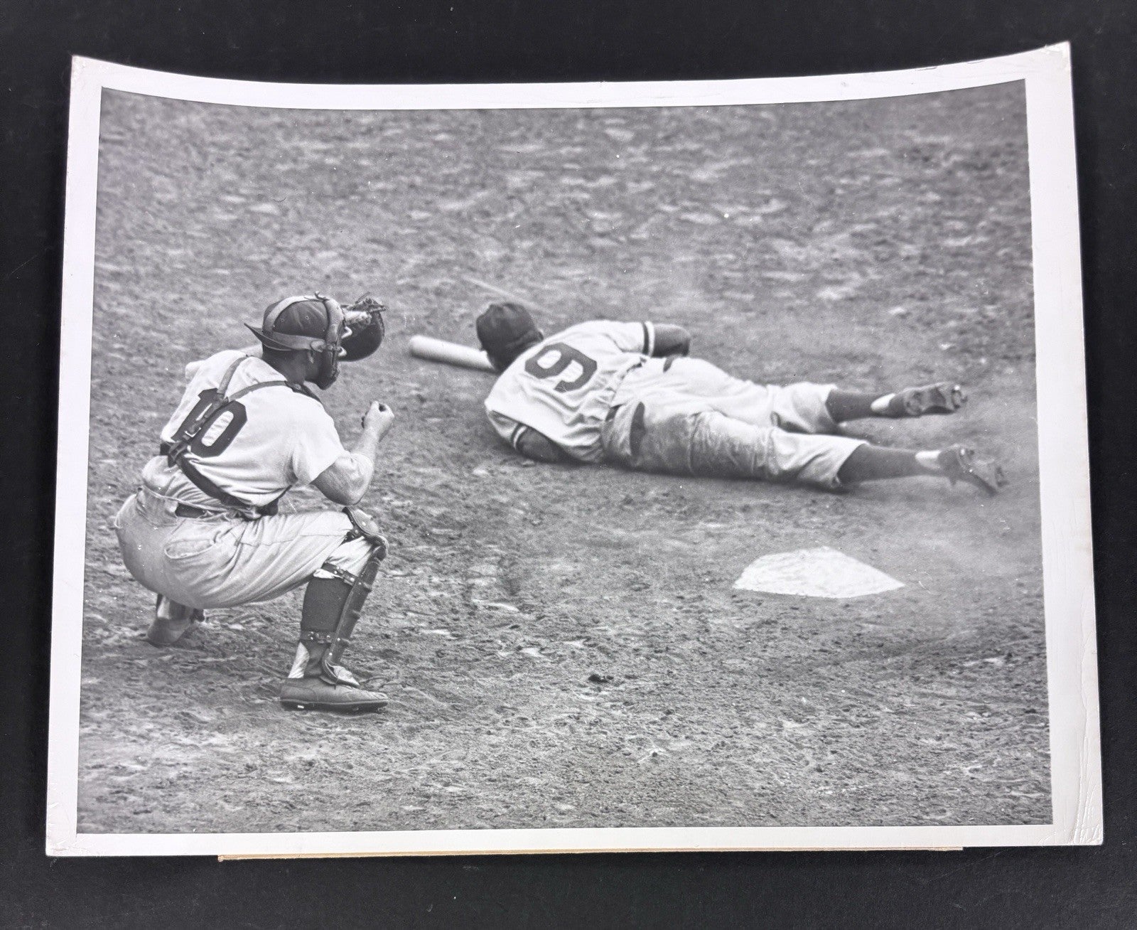 Capture a slice of baseball history with this authentic original newspaper wire photo. Measuring 7x9 inches, this vintage piece features the player, a must-have for any serious collector or sports enthusiast.