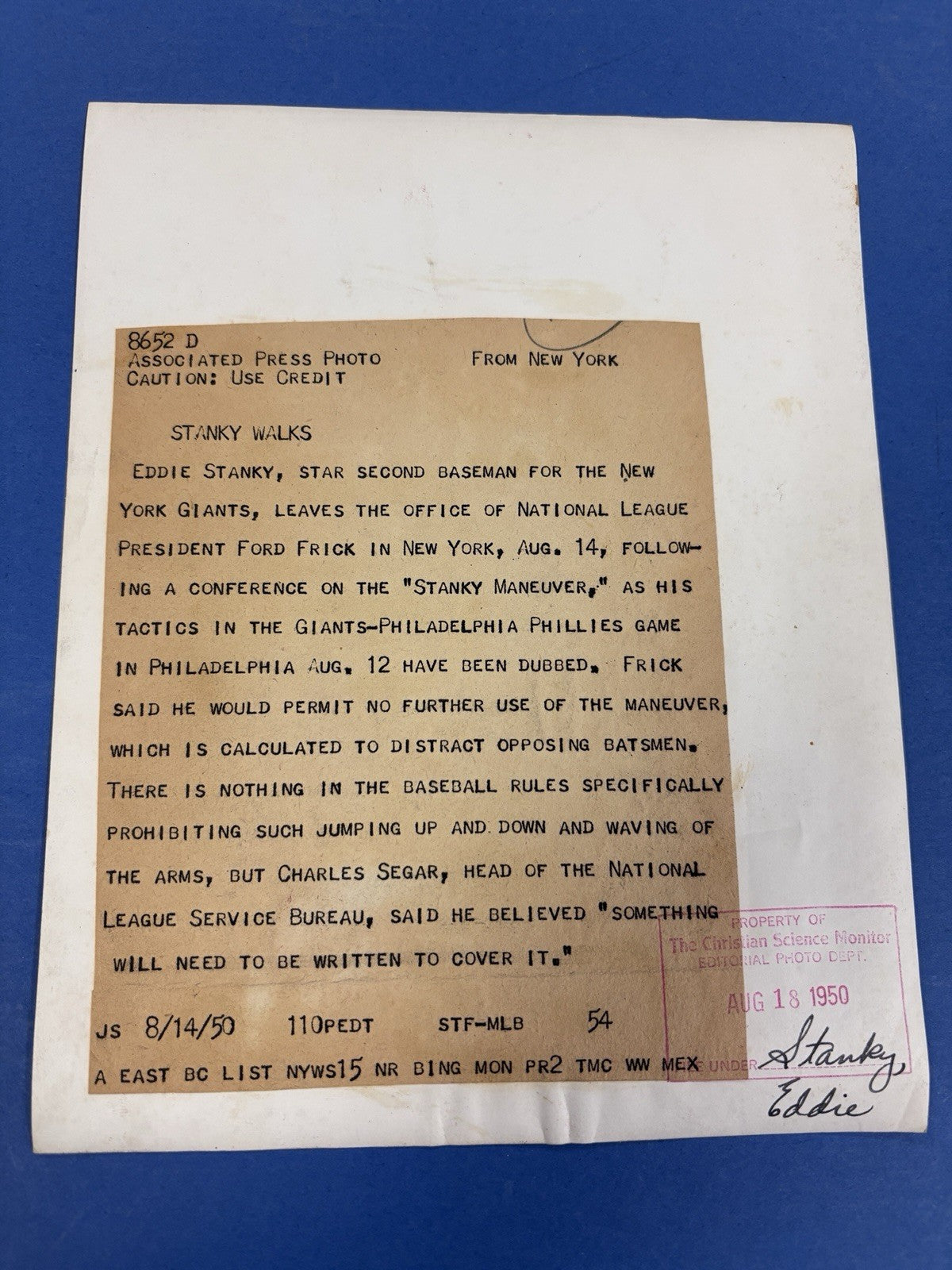 1950 Eddie Stanky Original 7x9 Newspaper Wire Photo New York Giants