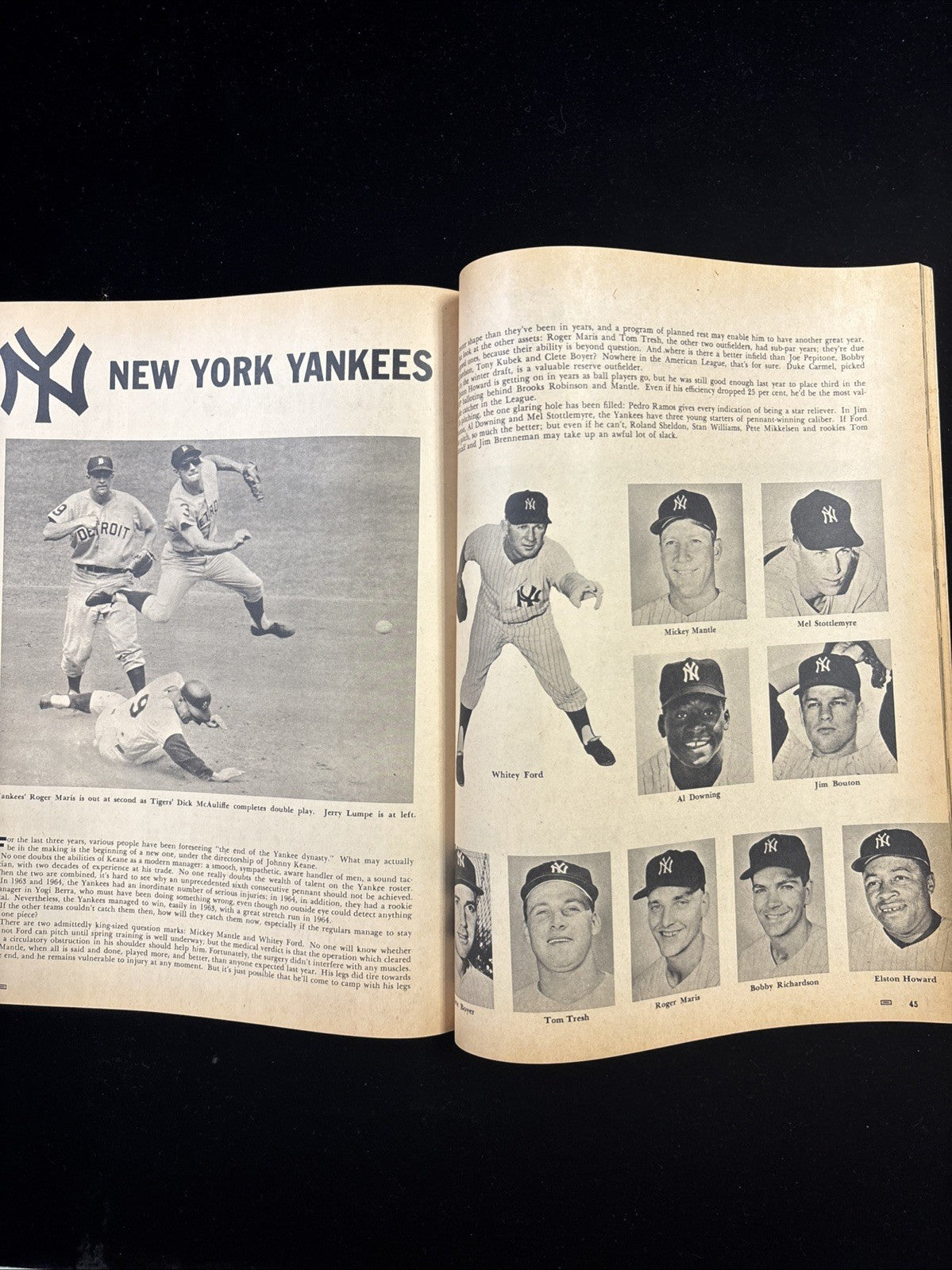 The product is a vintage 1965 True's Baseball Yearbook featuring Elston Howard of the New York Yankees on the cover. This collectible item offers a glimpse into the baseball world of that era, with a focus on a specific player and team. Ideal for sports memorabilia enthusiasts, this yearbook captures a piece of baseball history with its vintage charm and nostalgic value.