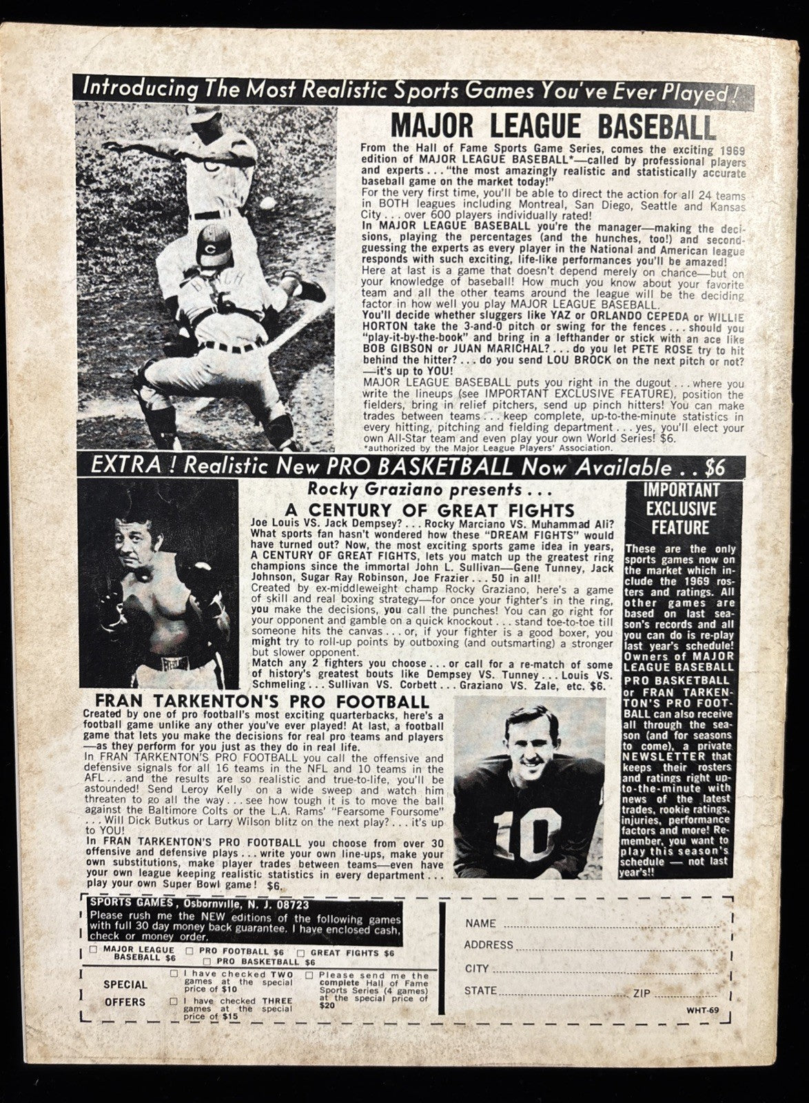 The product is a 1969 Baseball Annual Magazine featuring Willie Mays and Pete Rose on the cover. This vintage sports memorabilia item likely includes articles, photos, and information about these baseball legends during the 1969 season. The magazine likely showcases the players in their respective teams, the San Francisco Giants and Cincinnati Reds, making it a valuable collectible for fans of baseball history and memorabilia. **staining shows on the cover**