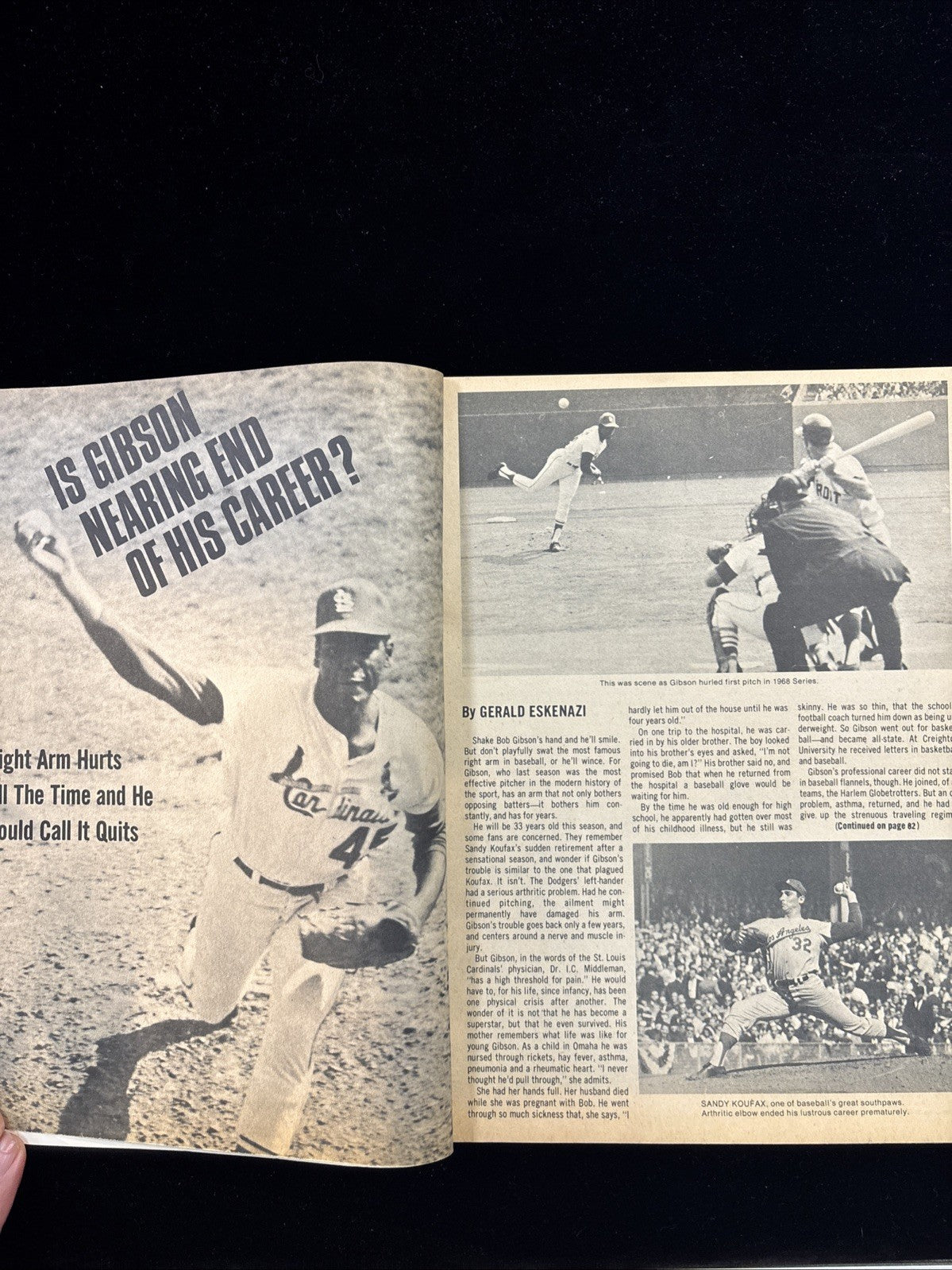 The 1969 Sports Quarterly Magazine featuring Bob Gibson and Mickey Lolich on the cover is a nostalgic piece of vintage sports memorabilia. This original magazine, sourced from the United States, captures a significant moment in baseball history. With iconic players like Bob Gibson and Mickey Lolich showcasing their skills on the cover, this magazine is a must-have for any sports memorabilia collector or baseball enthusiast looking to add a piece of history to their collection.