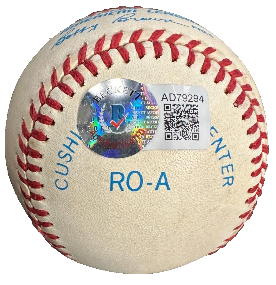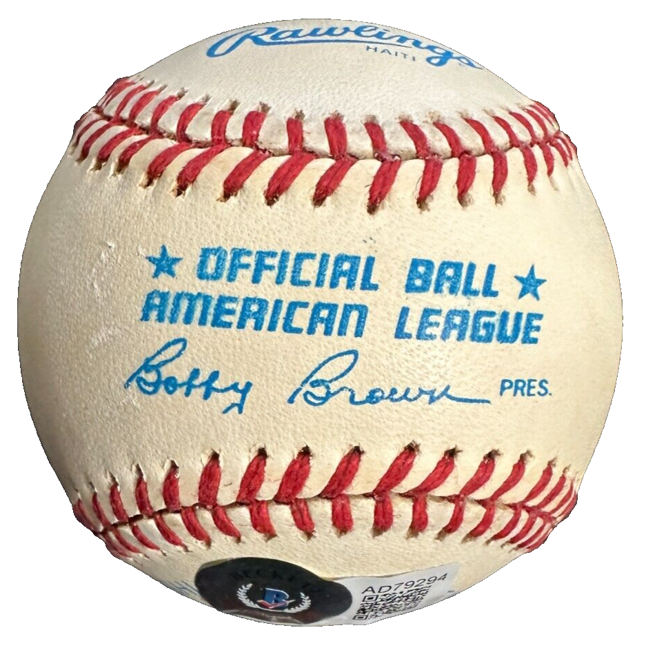 We're offering this Bobby Brown Official American League Baseball Autographed by Hall of Fame Pitcher Al Lopez of the Dodgers, Bees & Pirates. It's in nm condition (the ball is all white) and comes with a Hologram Issued by BAS (AD79294) Beckett Authentication Services and his signature is guaranteed to be 100% authentic. The ball will be shipped in a plastic display cube.