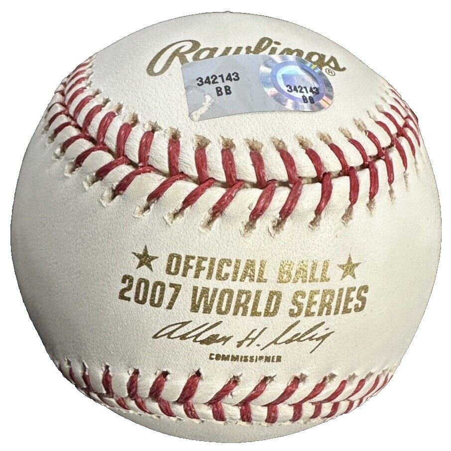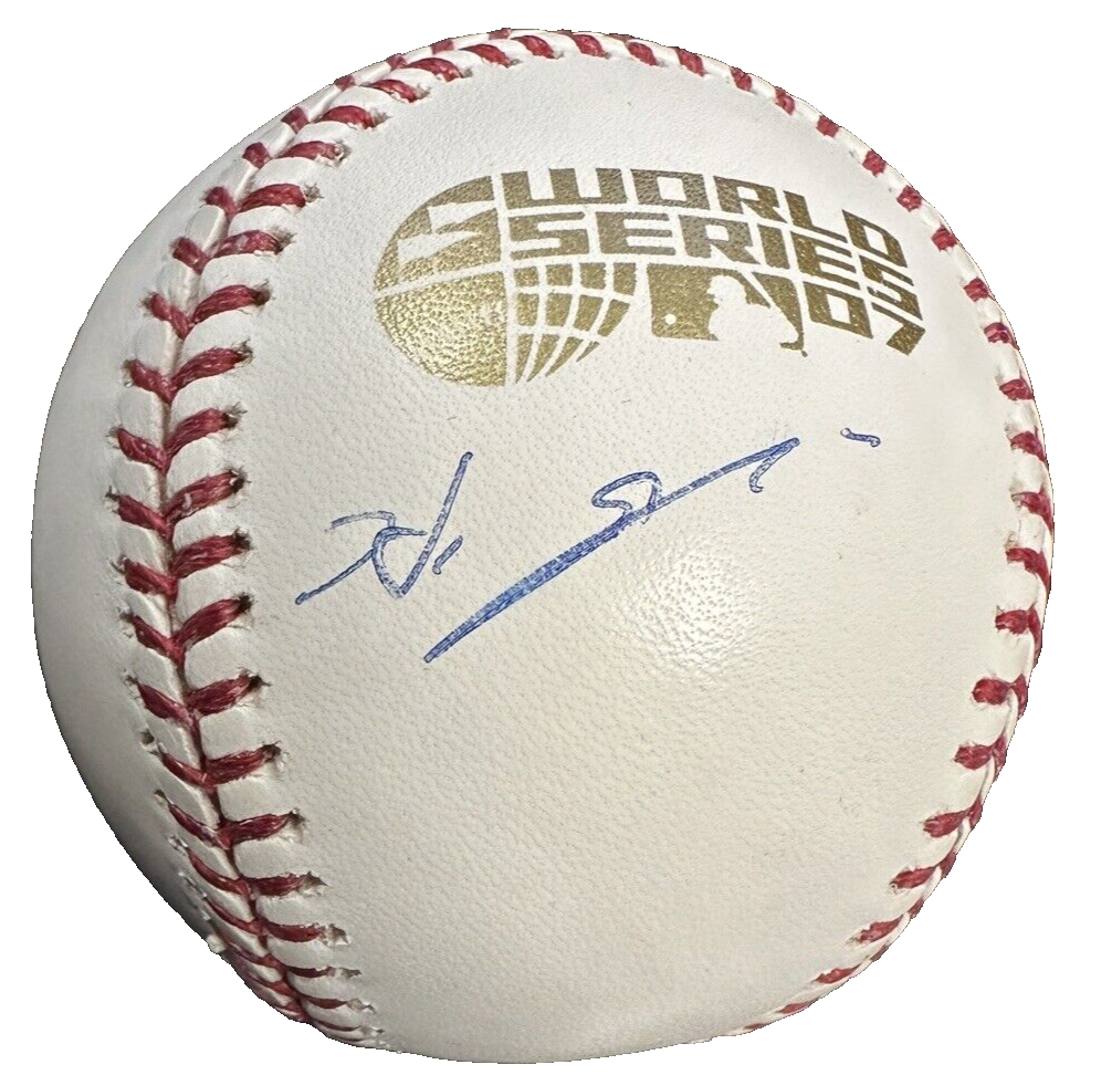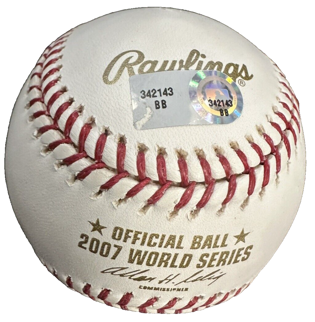 We're offering this Rawlings Official 2007 World Series Logo Baseball Autographed by relief pitcher Hideki Okajima of the Boston Red Sox. The ball is all white, it comes with a Hologram issued by MLB Authentic (BB342143) and his signature is guaranteed to be 100% authentic. It will be shipped on a plastic display square, and we will combine on shipping for similar items!