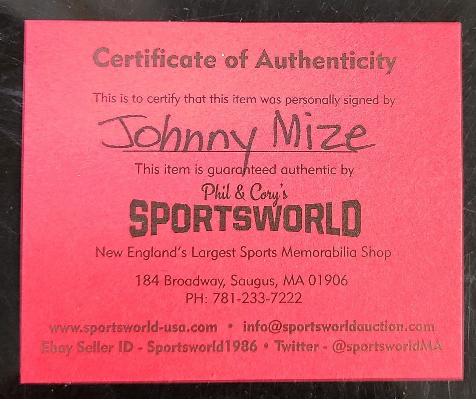Here is an amazing Johnny Mize signed baseball that any true baseball fan would love to add to their collection. In his Hall of Fame career he played for the Yankees, Cardinals and Giants. This legendary ball comes with a COA. Perfect for collectors or anyone who wants a piece of baseball history, this ball is a must-have for any fan of the sport. Don't miss out on the chance to own a piece of baseball history with this amazing Johnny Mize signed baseball.