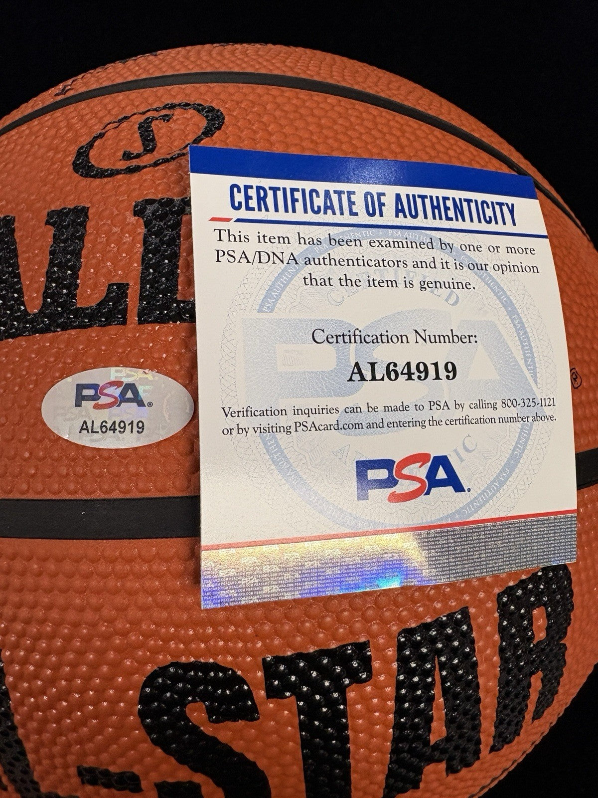 The product is a CJ McCollum signed Spalding All Star basketball authenticated by Professional Sports Authenticator (PSA). This item features the signature of the basketball player CJ McCollum, who plays for the Washington Wizards in the NBA. It is an original autographed basketball, making it a valuable collectible for fans and collectors of basketball memorabilia.
