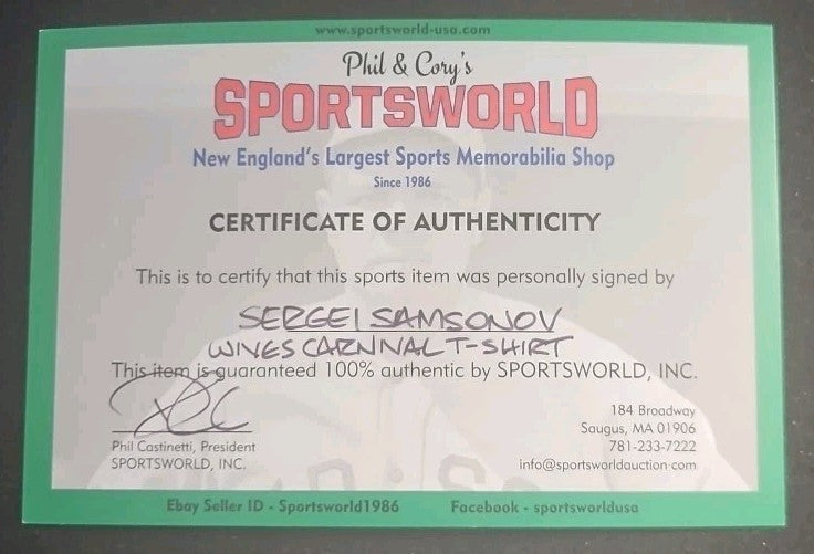 COA from Sportsworld, New England's Largest Sports Memorabilia Shop.