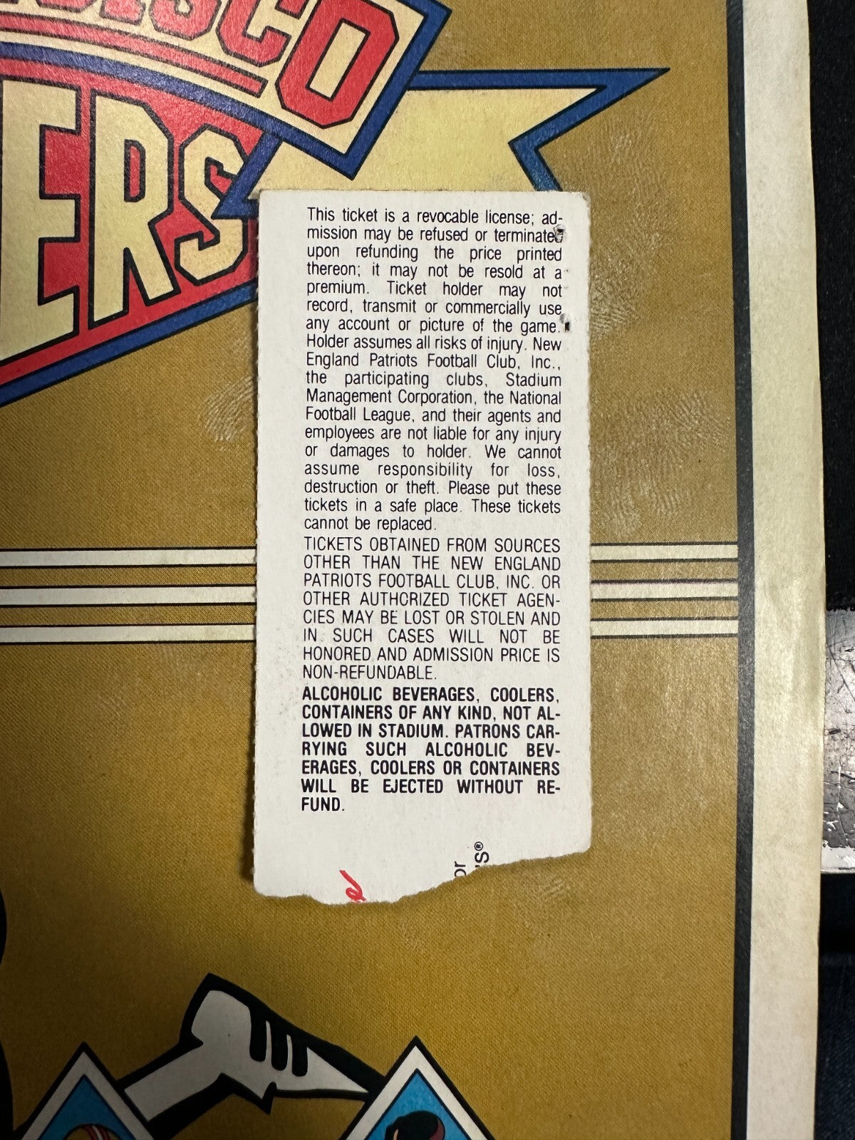 10/2/1983 New England Patriots & San Francisco 49ers Program Ticket 33-13 SF
