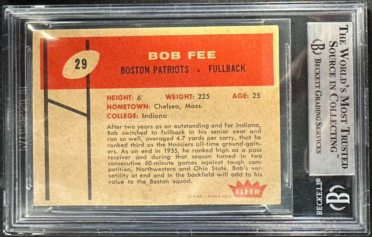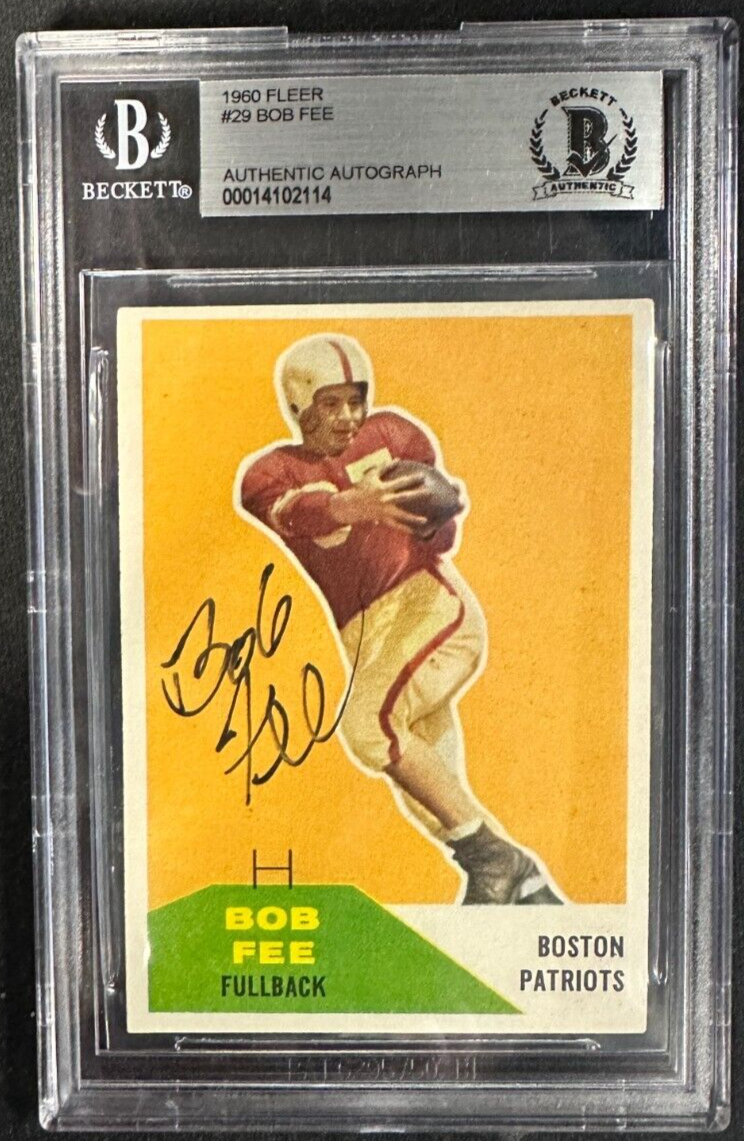 1960 Fleer Bob Fee Autographed Rookie Card RC #29 Boston Patriots BGS