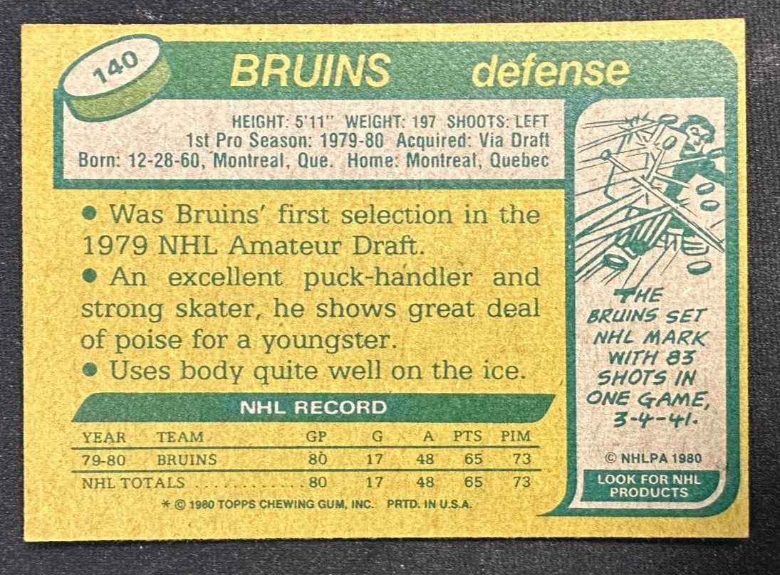 1980-81 Topps Ray Bourque Autographed Rookie Card #140 HOF