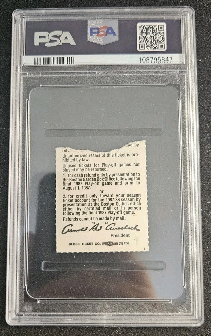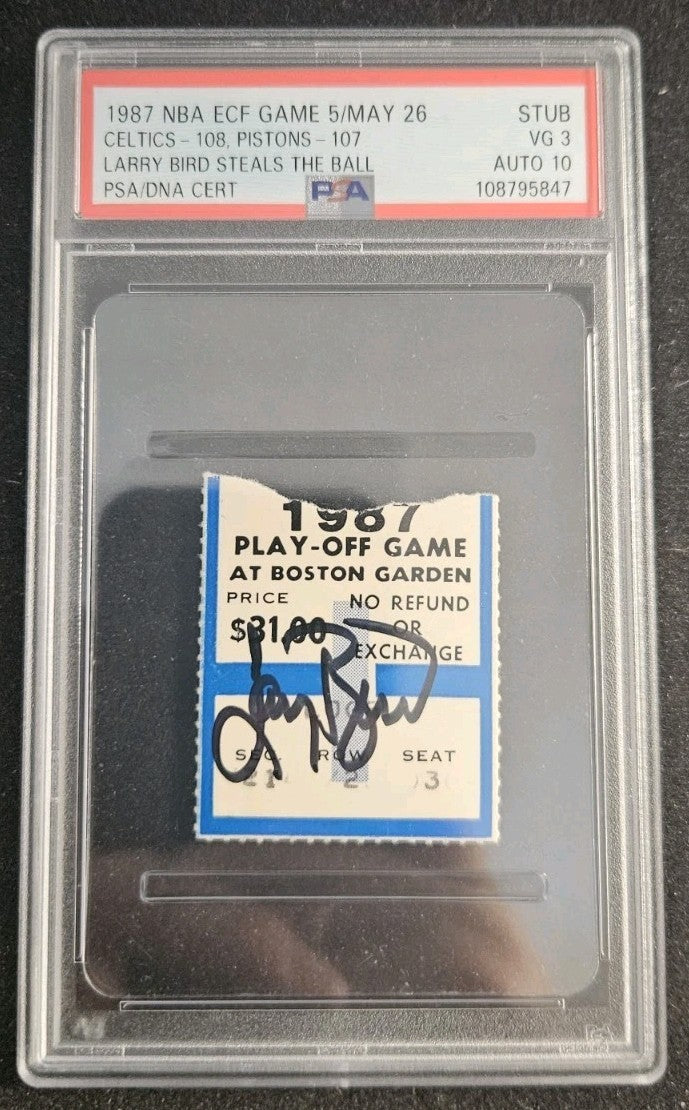 1987 NBA ECF GAME 5 LARRY BIRD STEALS THE BALL TICKET STUB PSA 3 AUTO 10 CELTICS
