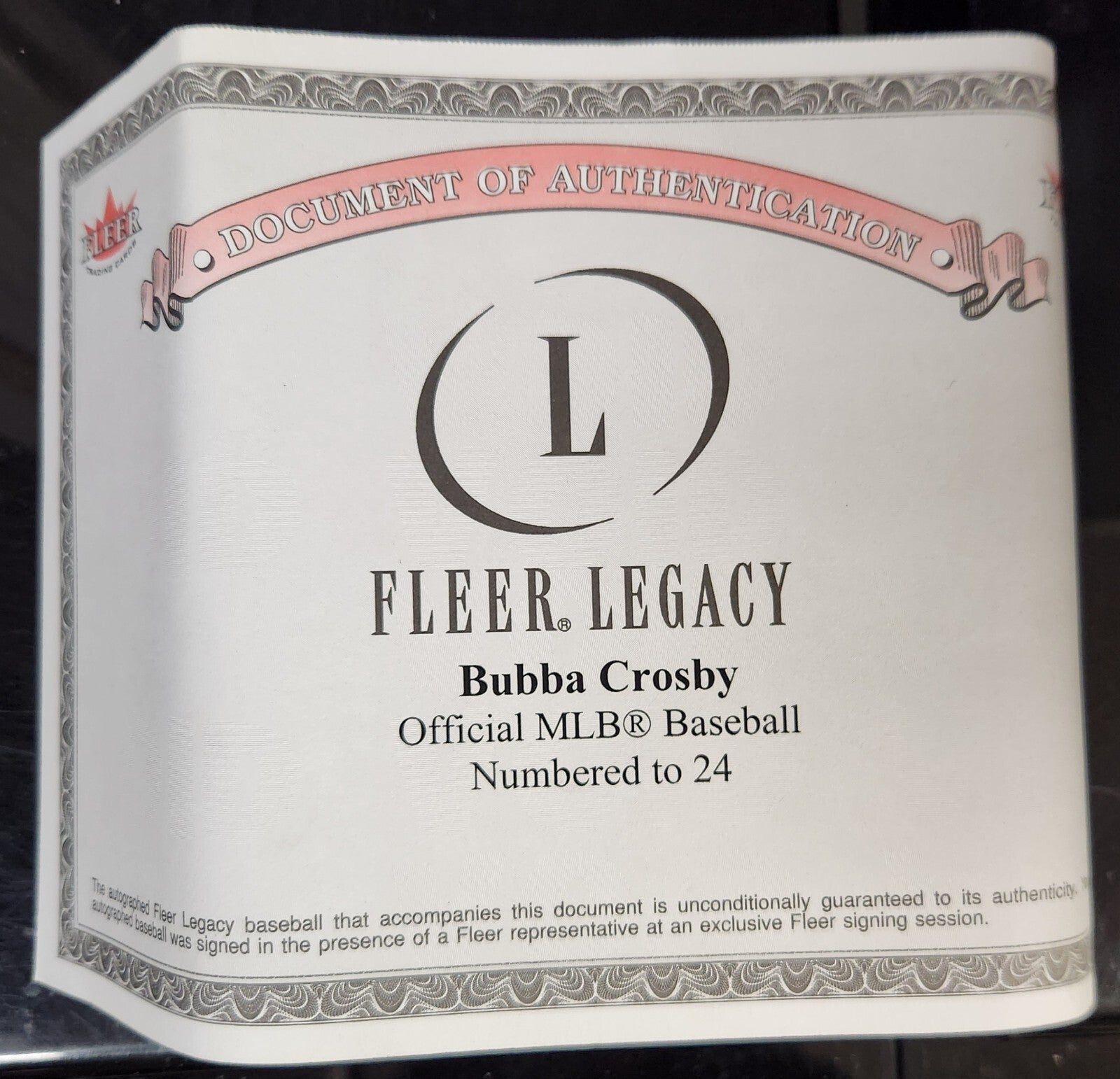 This 2004 Fleer Legacy Bubba Crosby Signed Major League Baseball is a great addition to any baseball fan's collection. The ball features a signature from Bubba Crosby, who played for the New York Yankees, and comes with a COA for authentication. The ball is numbered 7 of 24.
