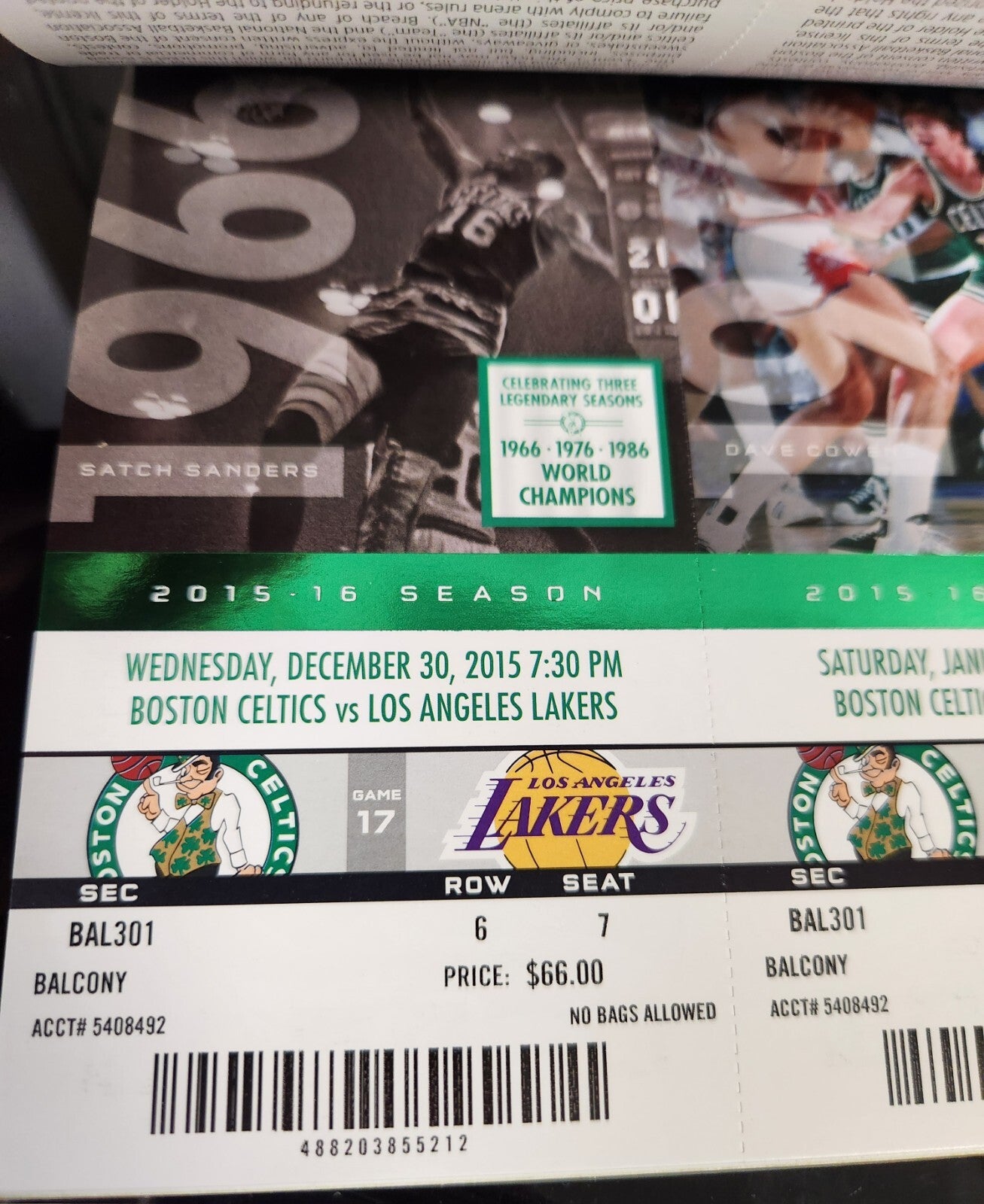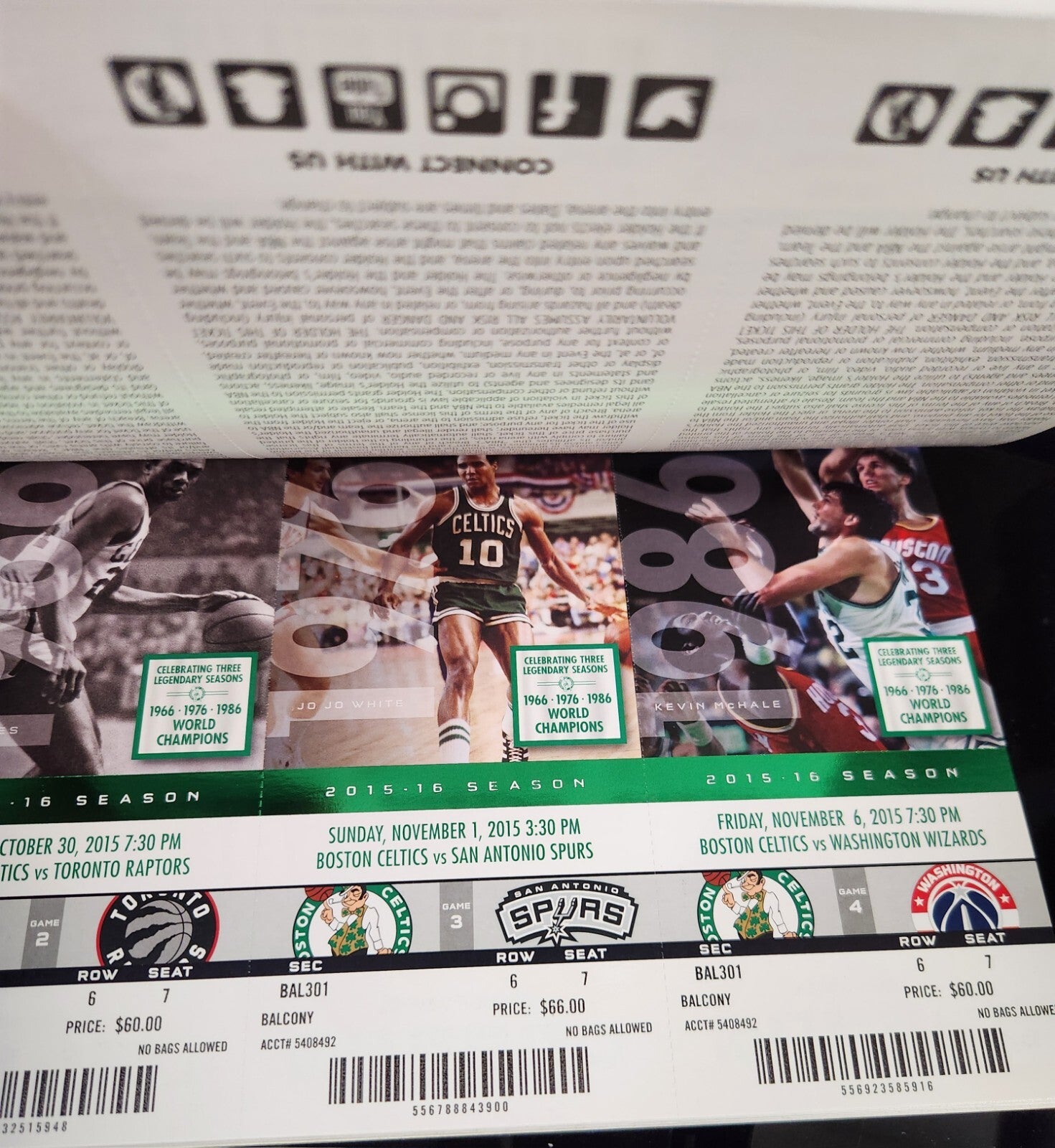 2015- 16 Boston Celtics Full Season Ticket Book - Kobe Bryant Last Game Boston