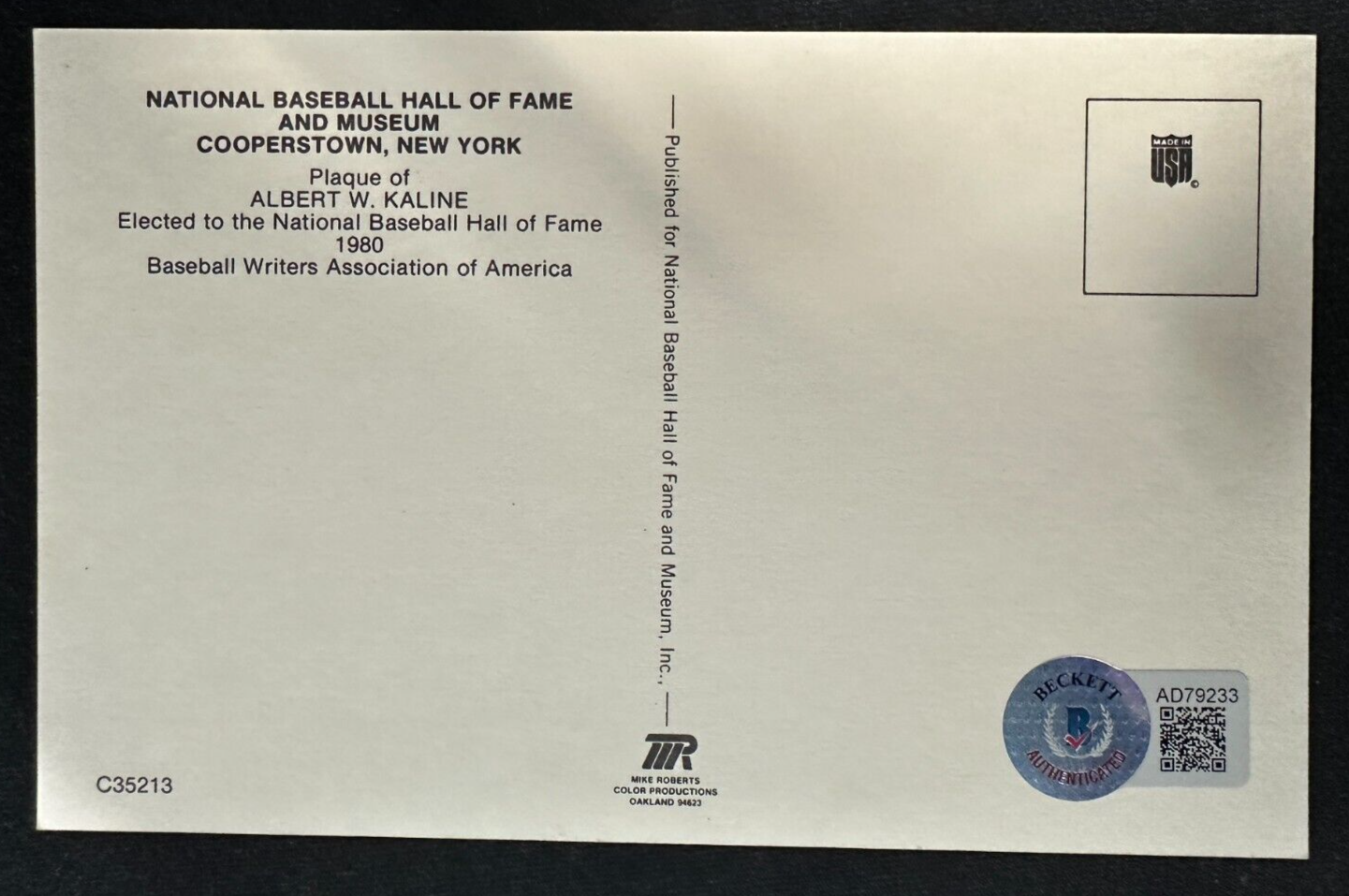 We're offering Official Baseball Hall of Fame Postcard autographed by All Star Outfielder Al Kaline of the Detroit Tigers. It'sin nm condition. It comes with a hologram Issued by BAS (AD79233) Beckett Authentication Services and his signature is guaranteed to be 100% authentic and we will combine on shipping for similar items!