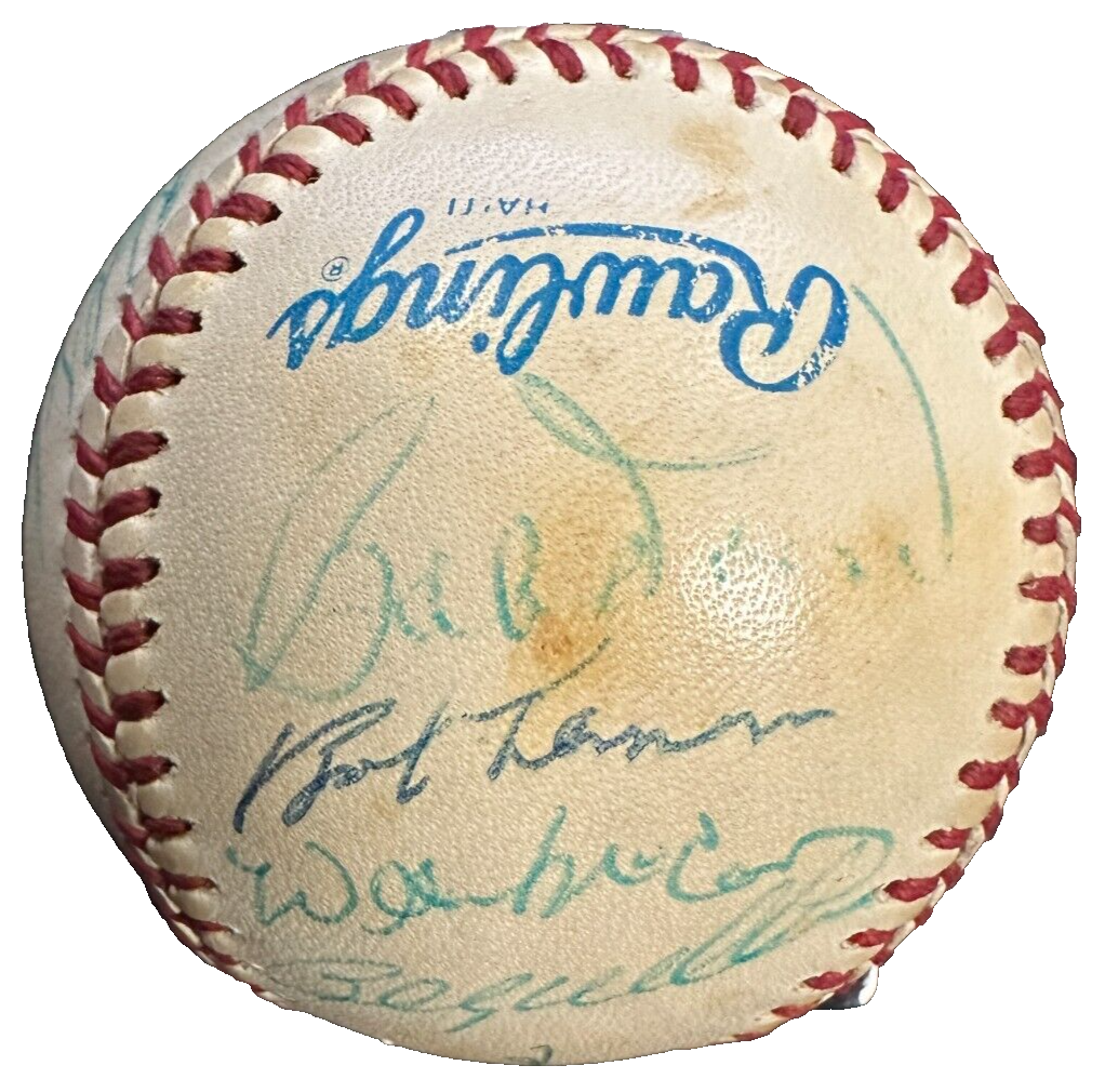 We're offering this Official Bobby Brown American League Baseball Autographed Members of the Baseball Hall of Fame. Signatures on the ball include Johnny Mize, Bob Lemon, Ray Dandridge, Billy Williams, Willie McCovey, Bobby Doerr, Warren Spahn, Steve Carlton. Whitey Ford, Ralph Kiner, Lou Brock, Billy Herman, Red Schoendienst, Charlie Gehringer, Joe Sewell & Al Barlick among others. It comes with a full letter LOA issued by BAS (AD58508) Beckett Authentication Services and all of the signatures are guaranteed to be 100% authentic. We will combine on shipping for similar items!