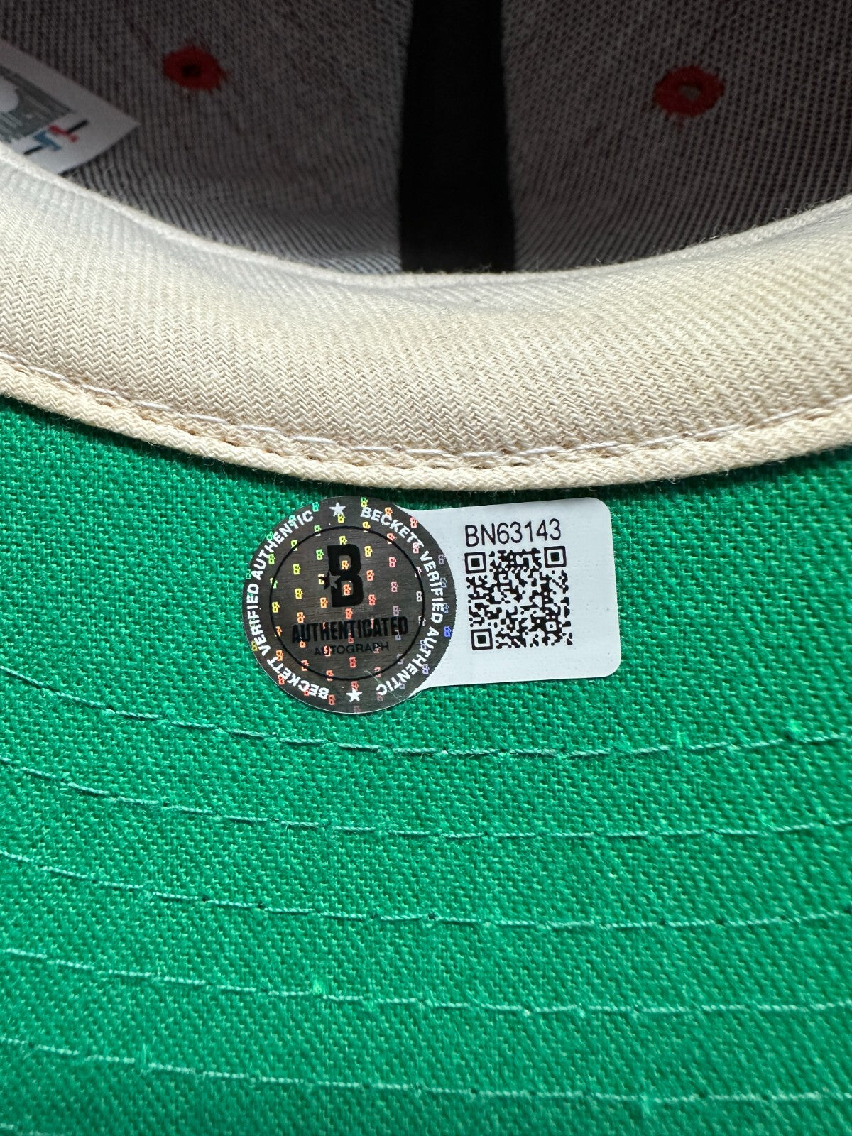 We're offering the 1975 Boston Red Sox throwback fitted hat Autographed by & inscribed with "HOF 89" Baseball Hall of Fame Outfielder "Yaz" Carl Yastrzemski. It's made by Roman and is a size 7 1/4 and is in nm condition. It comes with a hologram issued by BAS (BN63143) Beckett Authentication Services sand his signature is guaranteed to be 100% authentic. We will combine on shipping for similar items!