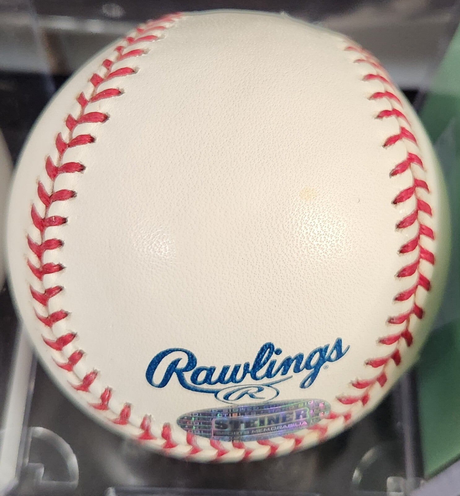 This Major League Baseball has been signed by legendary catcher Carlton Fisk, making it a must-have for any baseball fan or collector. Fisk played for both the Boston Red Sox and Chicago White Sox, and was inducted into the Hall of Fame in 2000. This baseball comes with a PSA & Steiner COA, ensuring its authenticity.