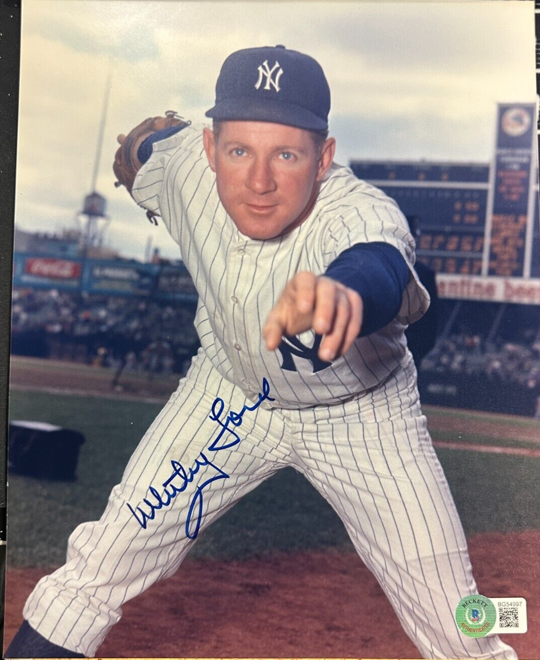 We're offering this 8x10 Photo autographed by Baseball Hall of Fame Pitcher Whitey Ford of the New York Yankees. It comes with a Hologram Issued by BAS Beckett Authentication Services (BG54997) and his signature is guaranteed to be 100% authentic. The photo is in nm condition, and we will combine on shipping for similar items!