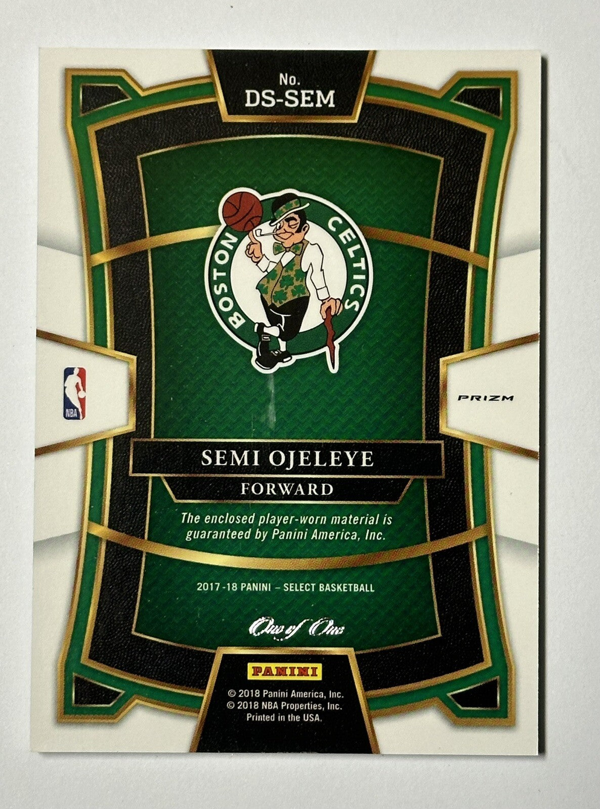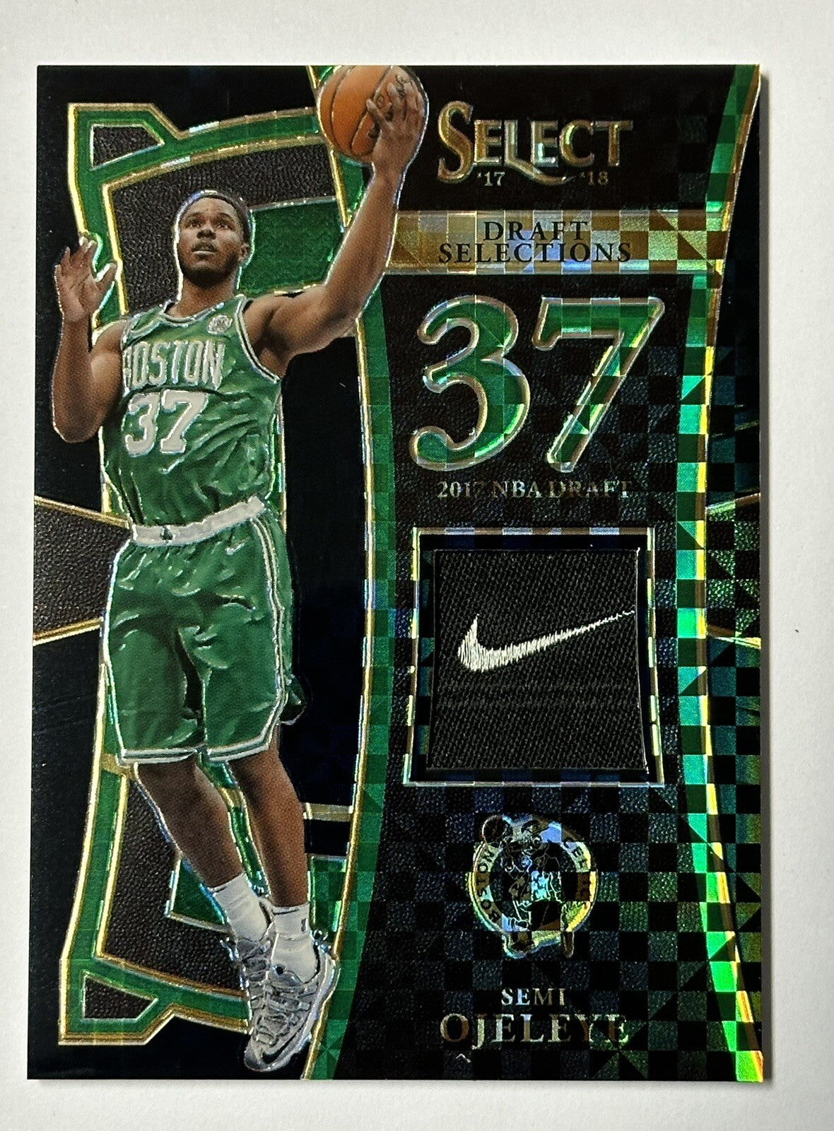 This 2017-18 Panini Select Semi Ojeleye Draft Selections Nike Swoosh 1/1 Rookie trading card is a must-have for any Boston Celtics fan. Featuring the rookie Semi Ojeleye, this card is a great addition to any sports trading card collection. The card is manufactured by Panini and is part of the 2017-18 set.