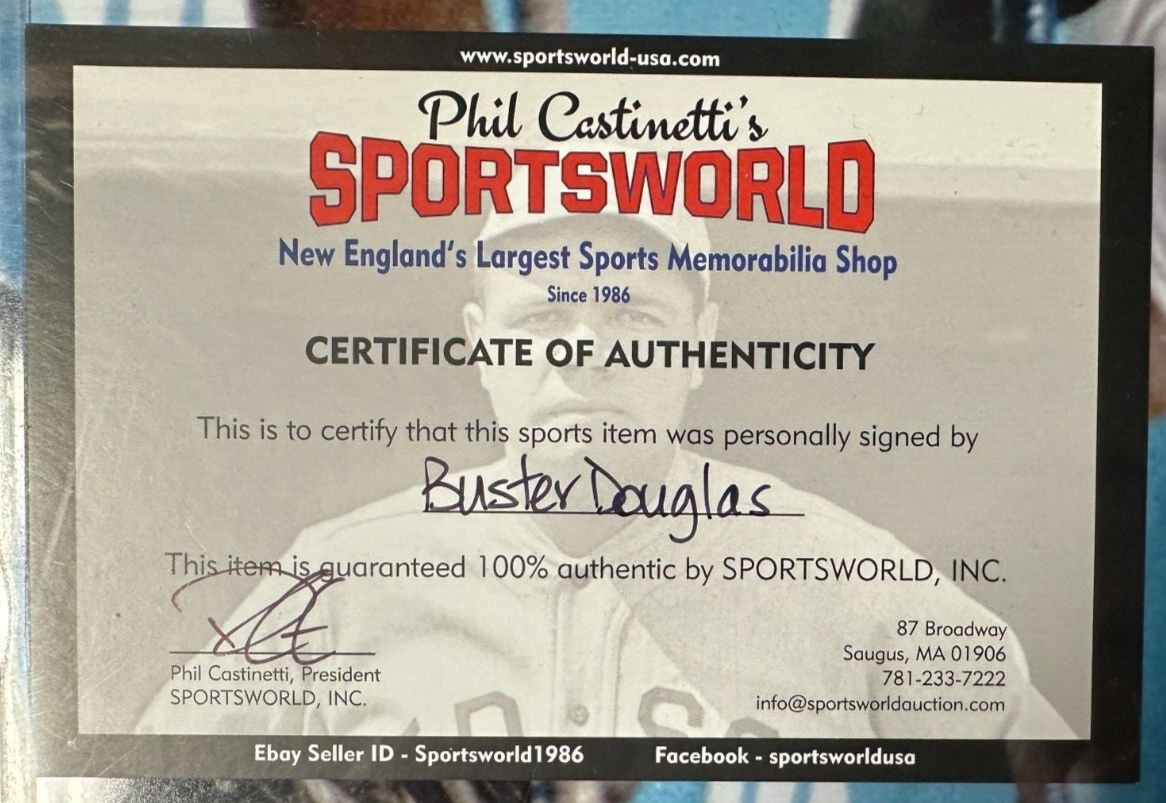 We're offering this 16x20 Photo Autographed by former Heavyweight Boxing Champion James "Buster" Douglas standing over Mike Tyson after he knocked him out. It comes with a COA Issued by Sportsworld, New England's Largest Sports Memorabilia Store and his signature is guaranteed to be 100% authentic. The photo is in nm condition.