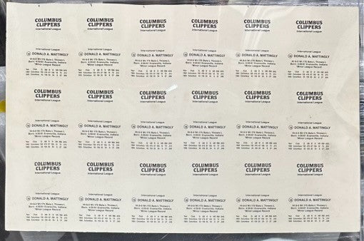 1984 TCMA Don Mattingly Columbus Clippers Uncut Card Sheet Yankees