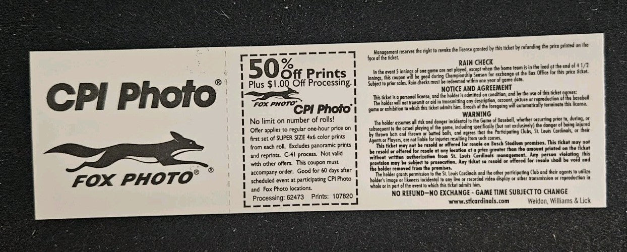 The ticket is from a game that took place in 1998 and is a piece of history that any fan would love to own. The Cardinals and Expos were both competitive teams at the time, and this game was a great matchup. The ticket is an original, not a reproduction, and is the perfect addition to any vintage sports memorabilia collection.
