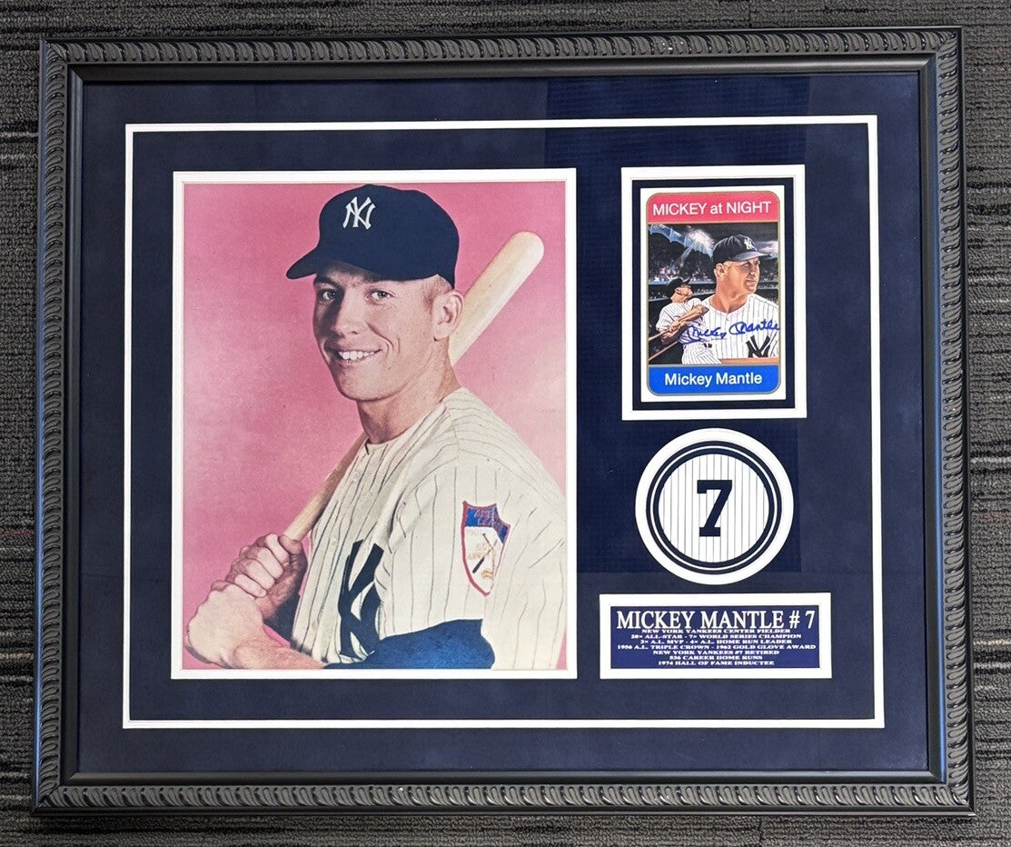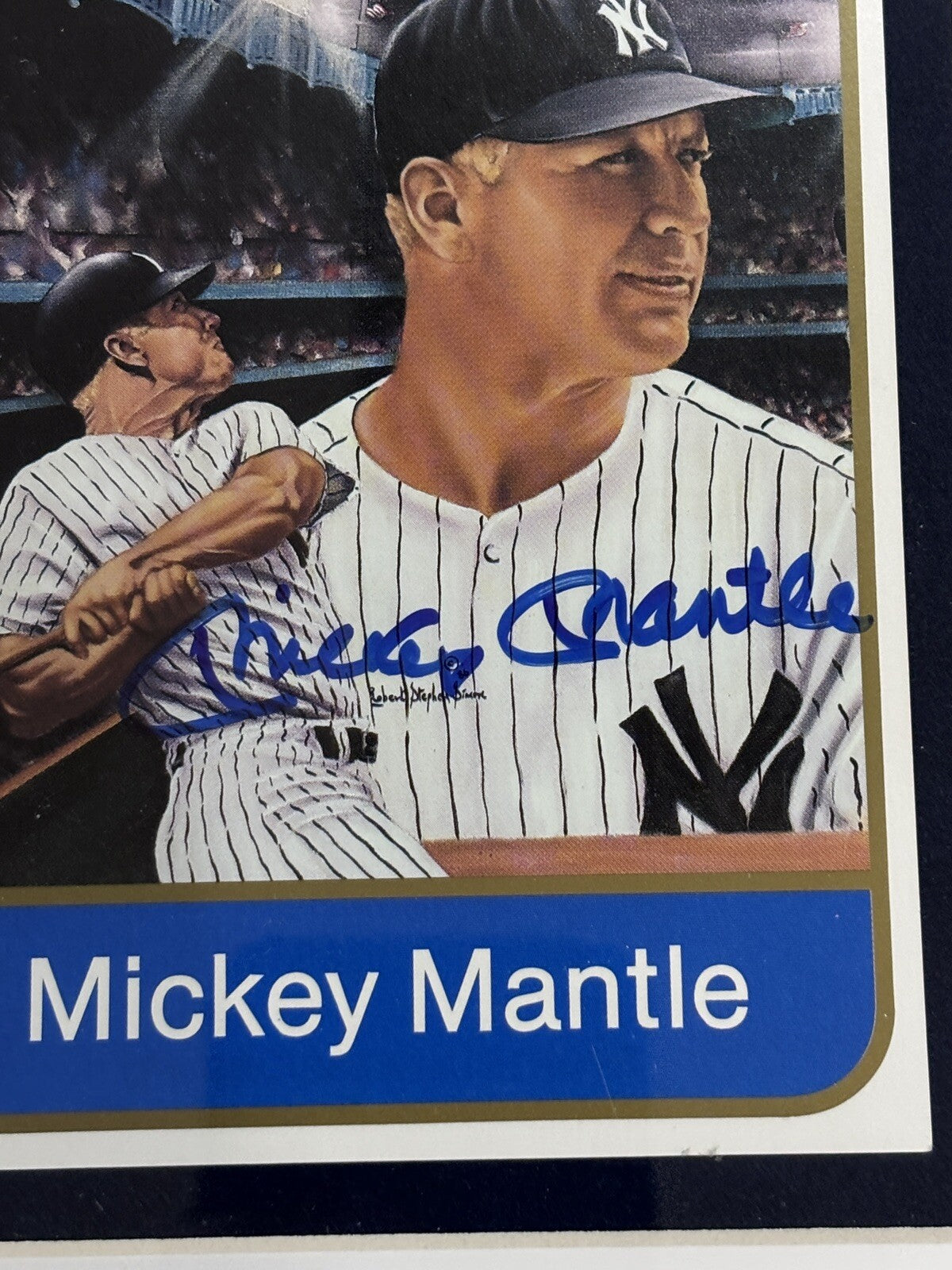 Mickey Mantle Signed Sports Impression 5x7 Card Framed With Photo Beckett LOA