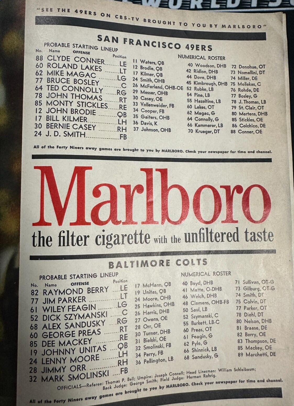 11/4/1962 San Francisco 49ers & Baltimore Colts Program NFL 22-3