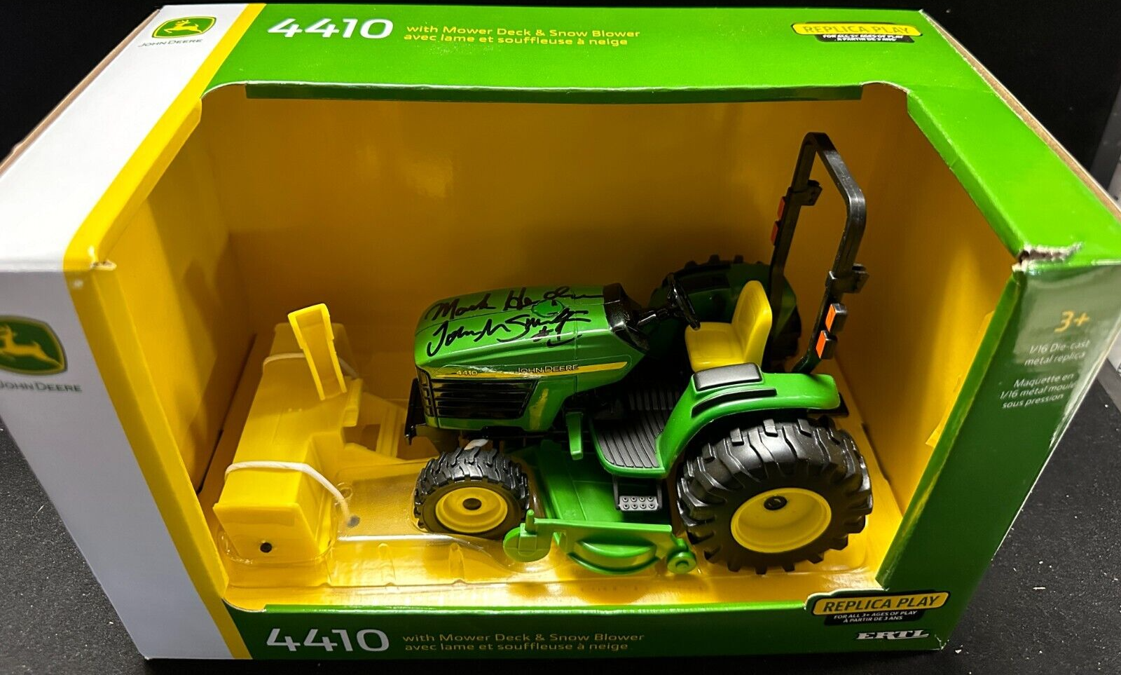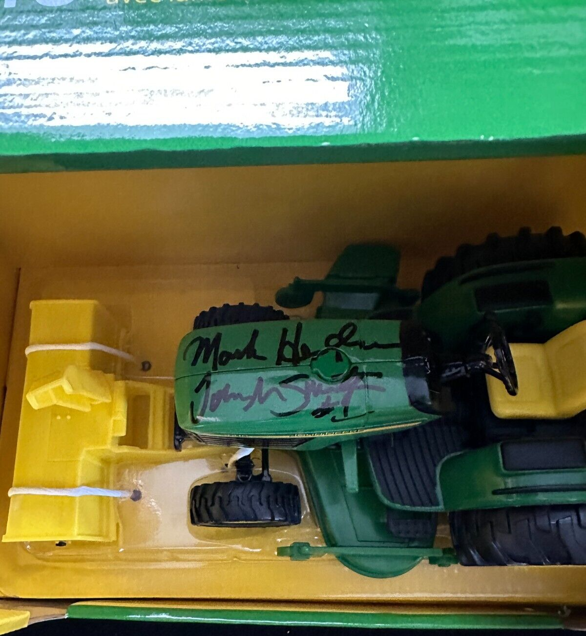 We're offering this really unique item signed by two men who had a huge part in the Famous New England Patriots Vs Miami Dolphins Snowplow Game at Foxboro Stadium on December 12, 1992. It's is a John Deere mini tractor / snowplow signed by driver of the plow Mark Henderson as well as former Patriots Kicker John Smith the man who kicked the game winning field goal after Mark plowed the field It's in nm condition, it comes in the original box along with COA Issued by Sportsworld, New England's largest sports memorabilia store and their signatures are guaranteed to be 100% authentic. Both men appeared at Sportsworld on June 2, 2024.