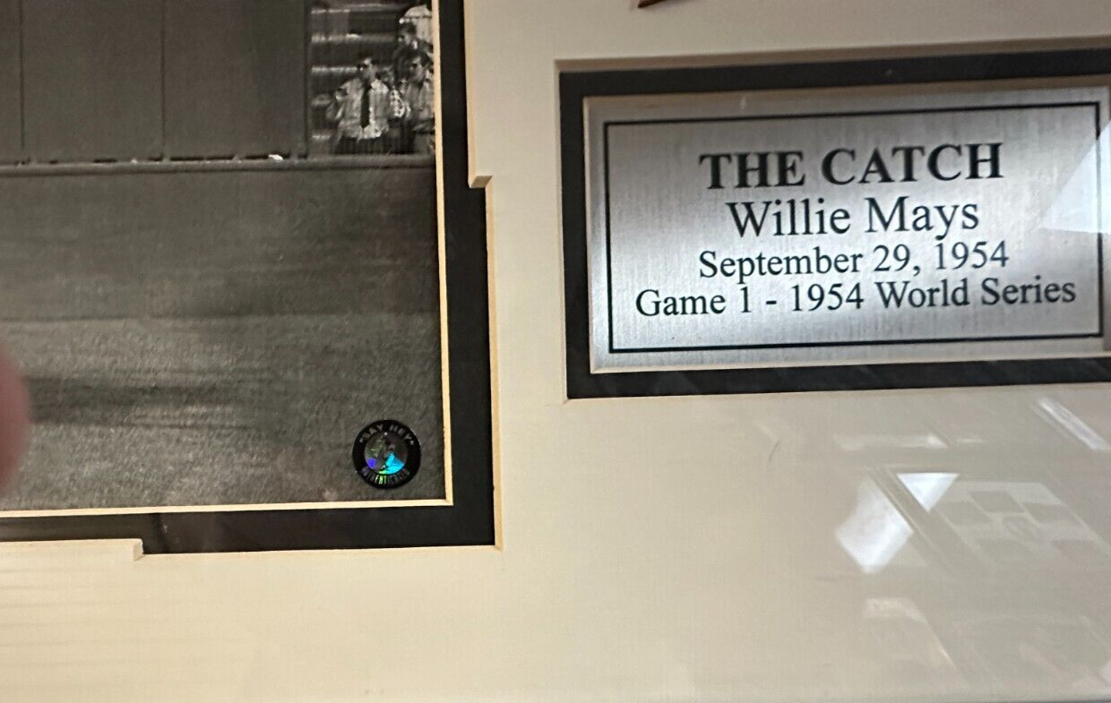 We're offering this Autographed 8x10 Photo of Hall of famer Willie Mays Making "The Catch" during the 1954 World Series. It's beautifully matted & framed. It comes with a Holograms Issued by Say Hey Authentics and his signature is guaranteed to be 100% Authentic.