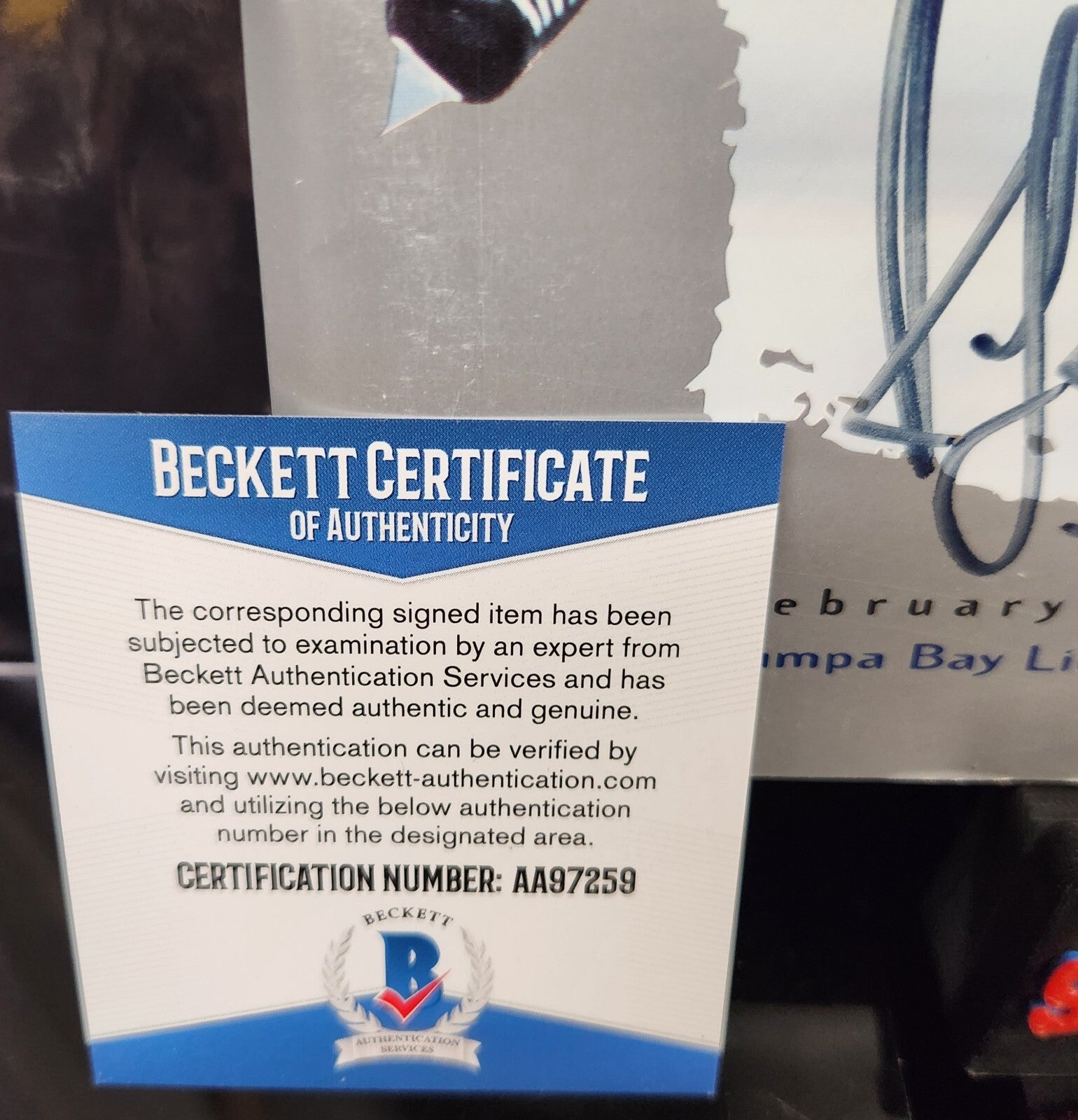 This vintage hockey program from February 1st, 1997 features an exciting match-up between the Boston Bruins and the Tampa Bay Lightning. The game was played in Tampa Bay and is an official Lightning game program. It includes the signature of legendary Bruins defenseman Ray Bourque, who had an impressive game with one goal and one assist. The program also comes with a Beckett certificate of authenticity and is a must-have for any Bruins fan or collector of vintage hockey memorabilia.