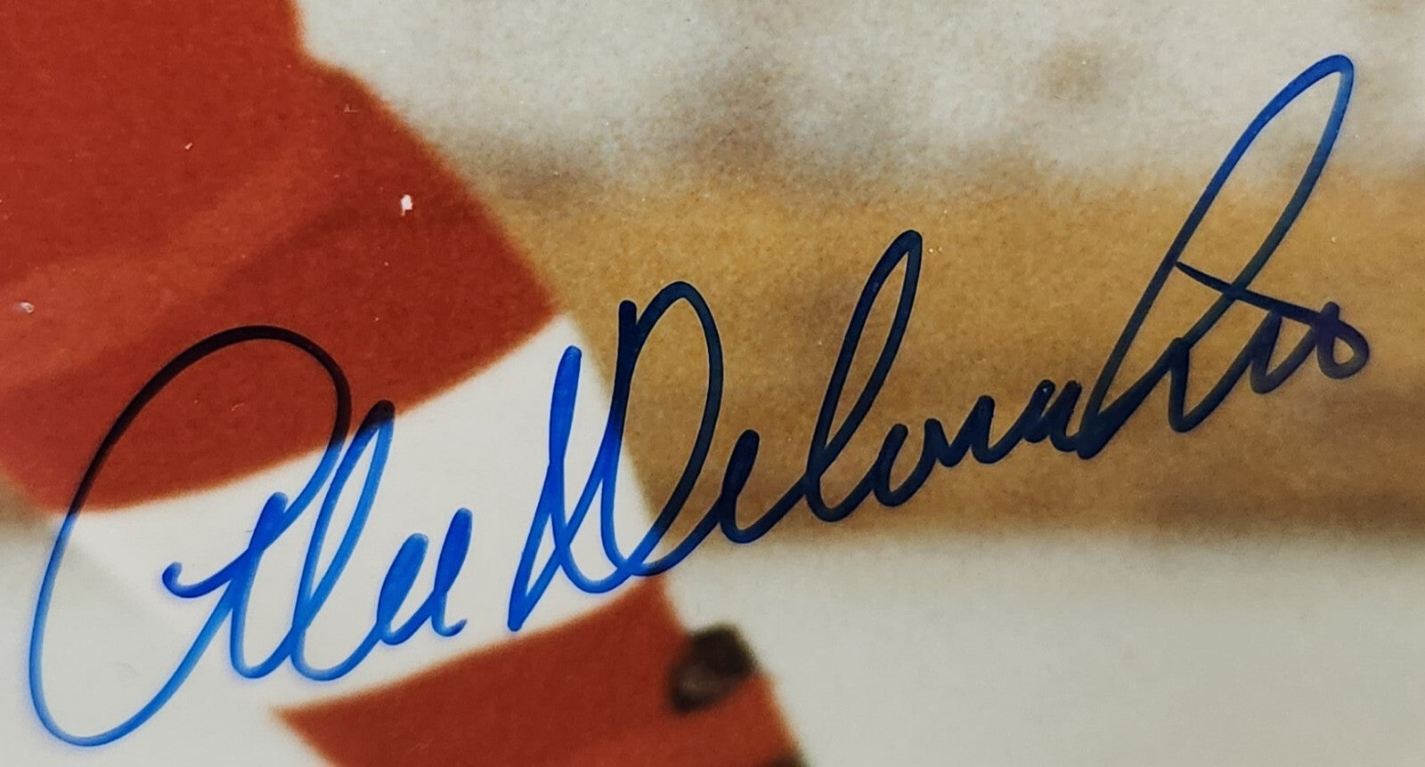 This 8x10 photo features the signature of Alex Delvecchio, a Hall of Fame player for the Detroit Red Wings. The photo is an original and has not been reprinted. It is a great addition to any collection for fans of hockey and the Red Wings. The photo showcases Delvecchio in action, making it a wonderful piece for collectors and fans alike.