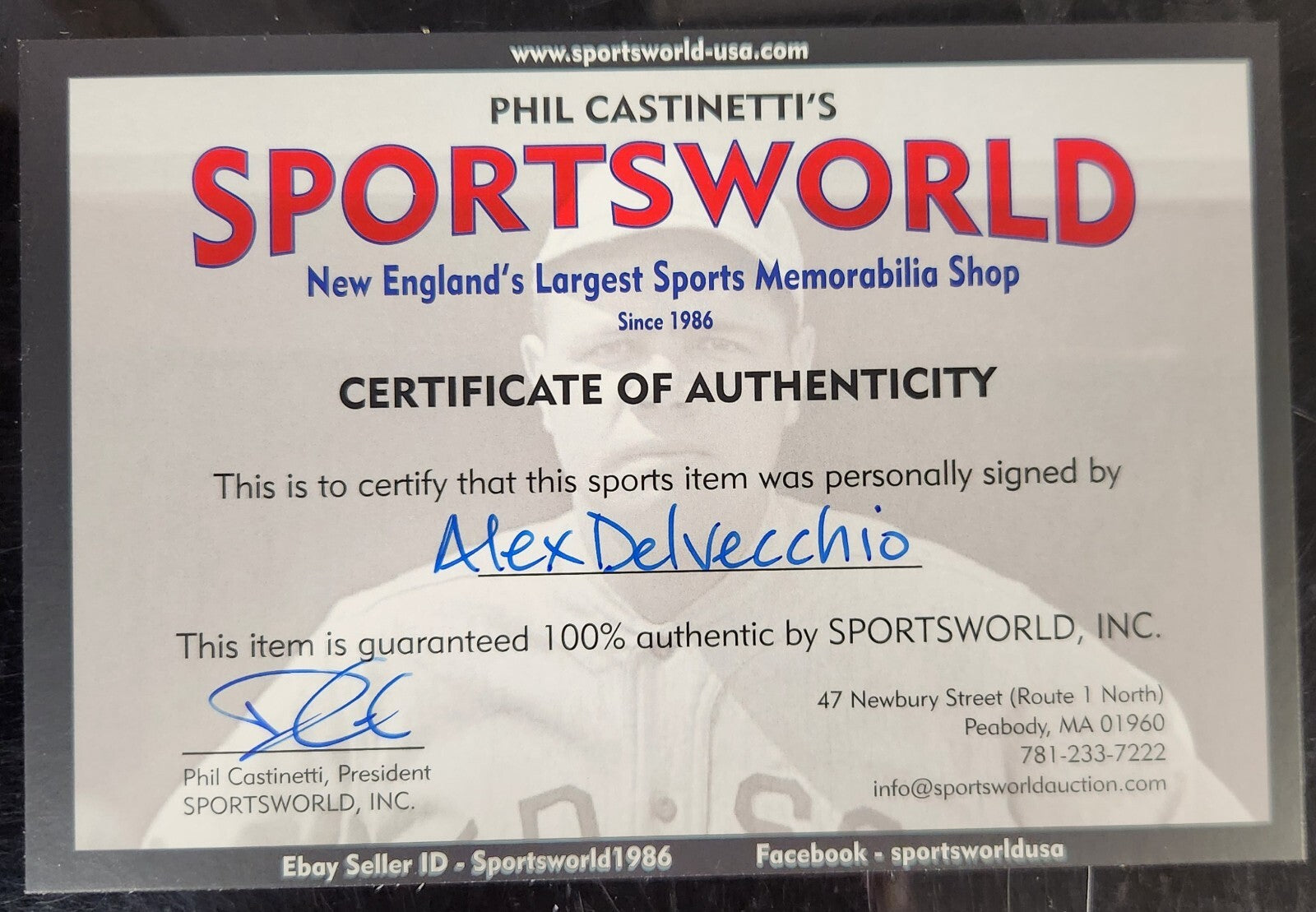 COA is from Sportsworld- New England's largest sports memorabilia shop. Please refer to our pictures to be sure.