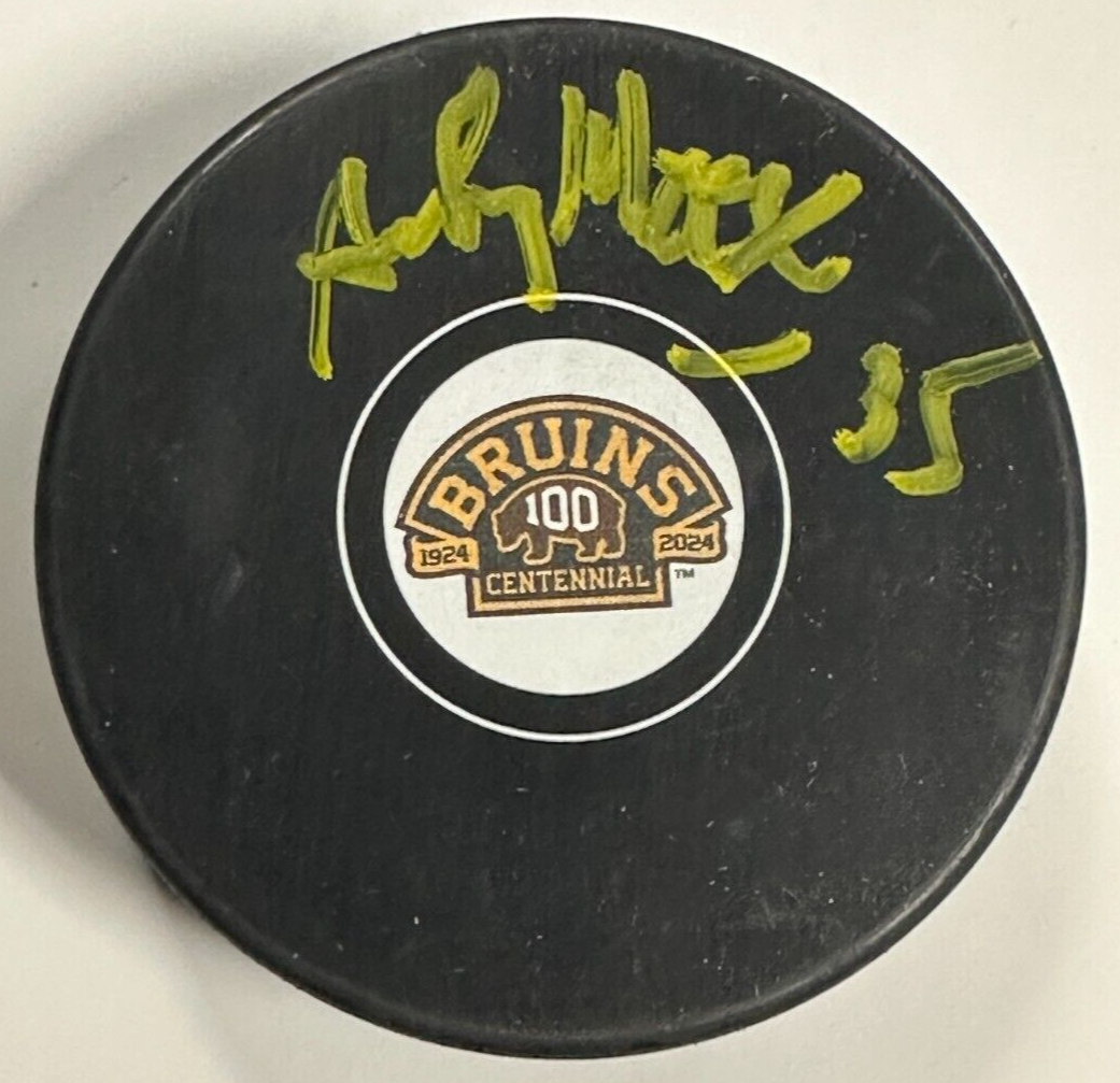 We're offering Official Boston Bruins 100th Anniversary Hockey Puck Autographed by Goalie Andy
