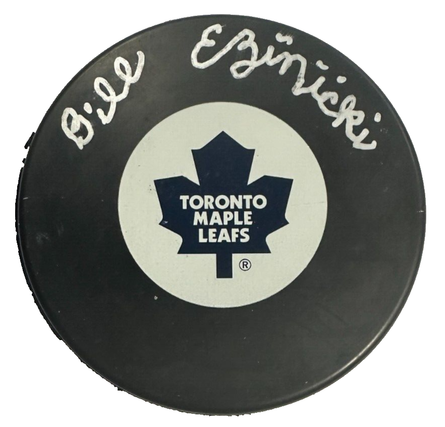 Bill Ezinicki Autographed Toronto Maple Leafs Hockey Puck BAS NHL