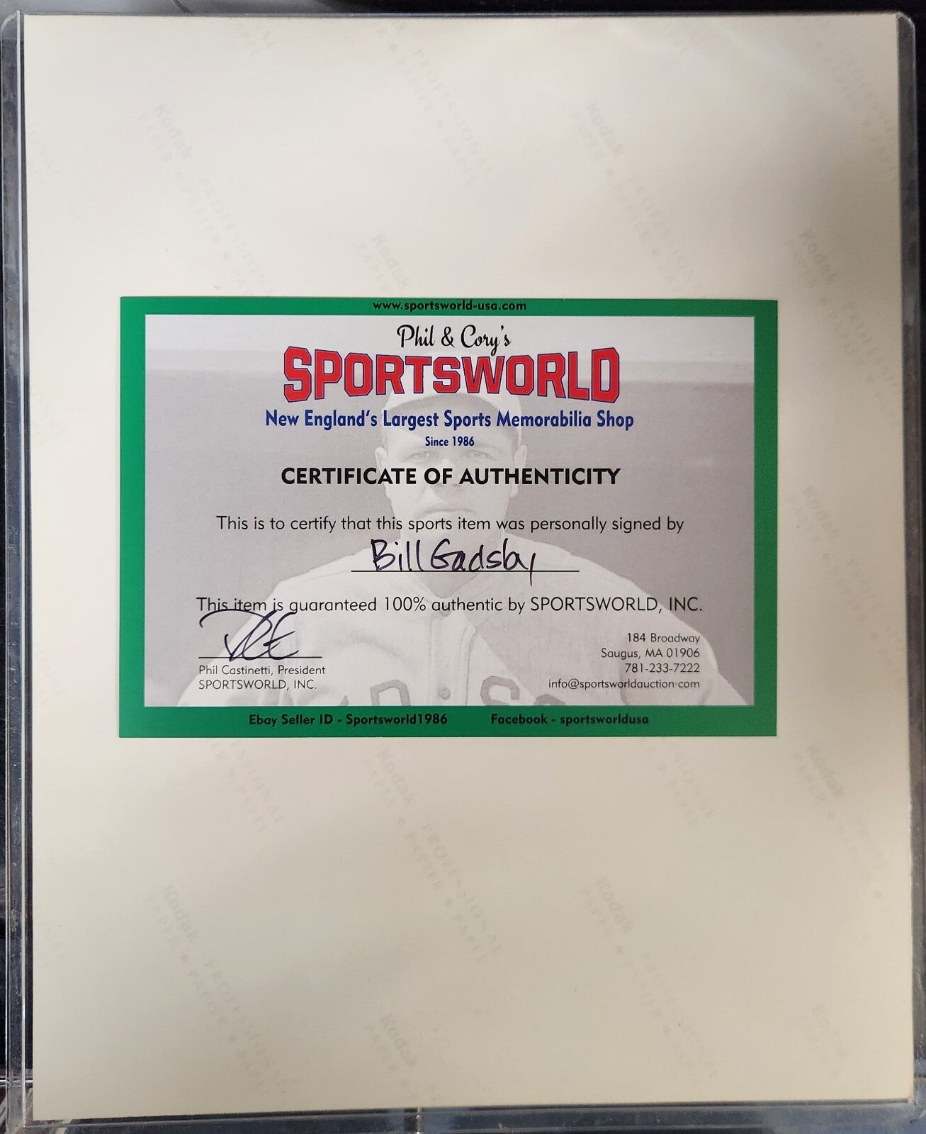 We're offering this 8x10 photo autographed by Hockey Hall of Famer Bill Gadsby of the Detroit Red Wings. It comes with a COA issued by Sportsworld, New England's Largest Sports Memorabilia Store and his signature is guaranteed to be 100% authentic. We will combine shipping on similar items.