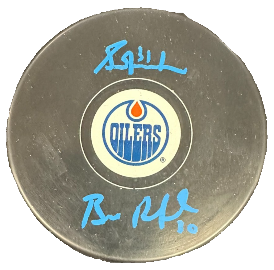 Bill Ranford & Grant Fuhr Autographed Edmonton Oilers Hockey Puck NHL
