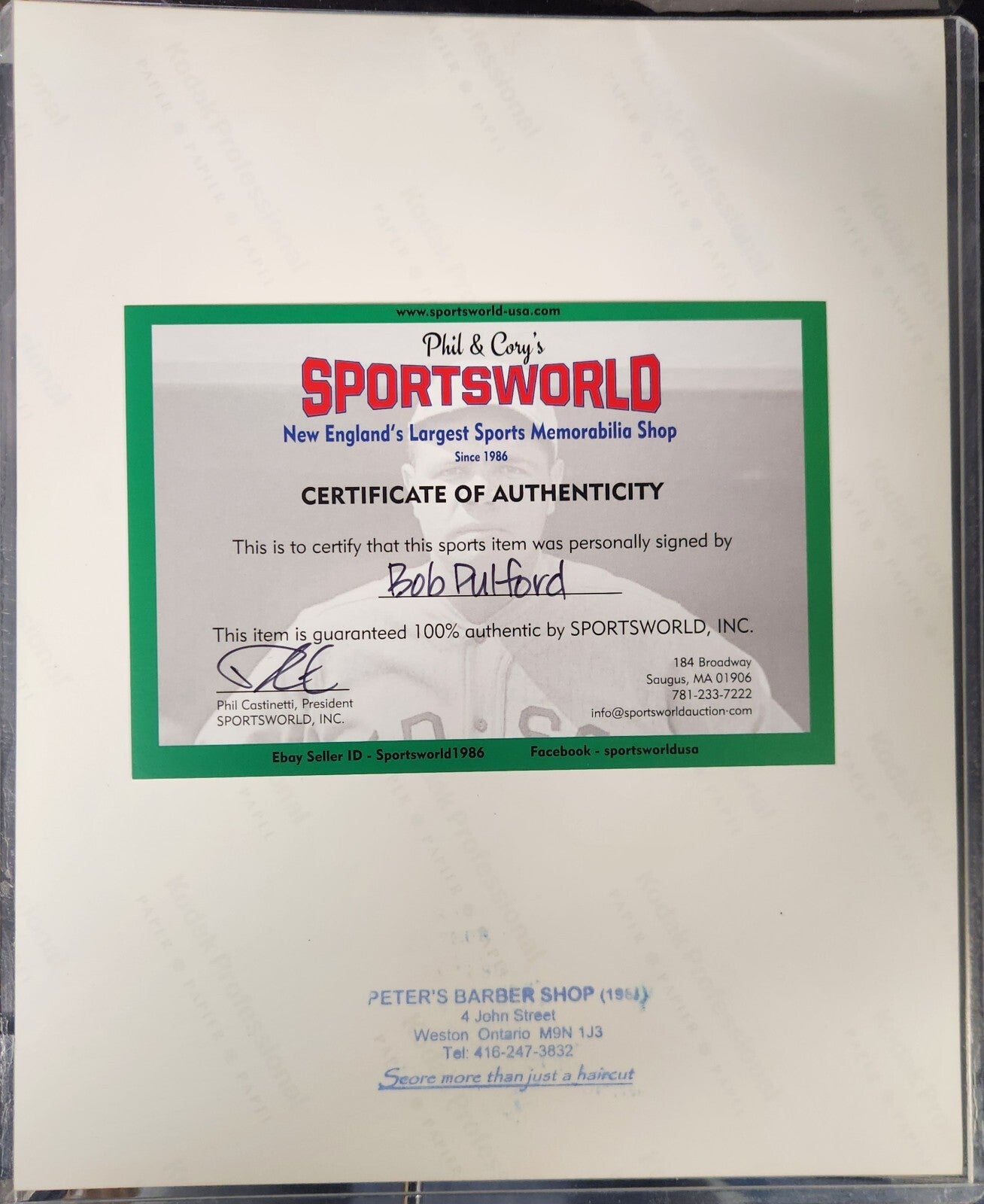 The COA is from Sportsworld- New England's largest sports memorabilia shop. Please refer to our pictures to be sure.