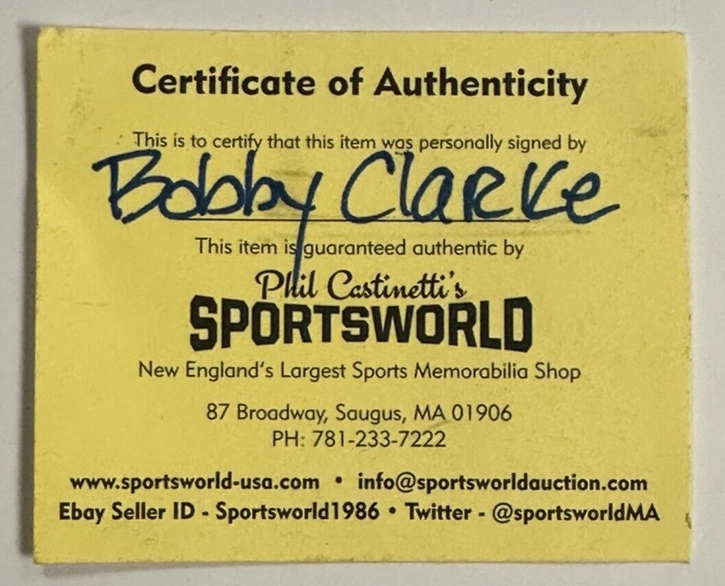 We're offering this 2010 NHL Winter Classic Hockey Puck Autographed by Hockey Hall of Famer Bobby Clarke of the Philadelphia Flyers. It's in ex condition and it comes with a COA issued by Sportsworld, New England's Largest Sports Memorabilia Store and his signature is guaranteed to be 100% authentic. It will be shipped in a plastic display square and, we will combine on shipping for similar items!