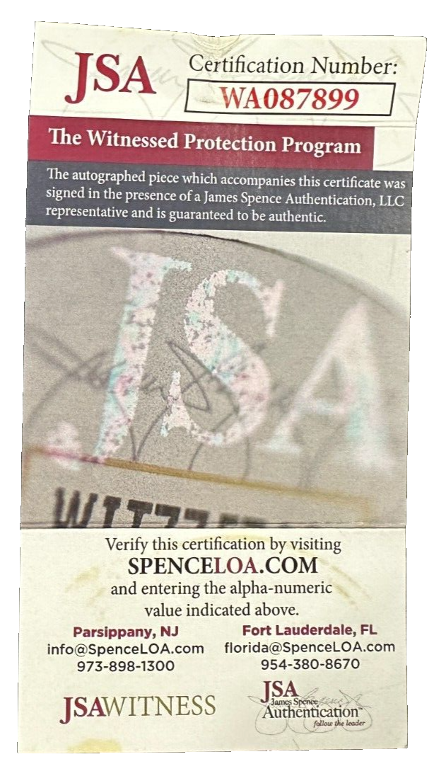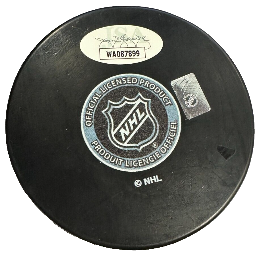 We're offering this Chicago Blackhawks Hockey Puck Autographed & Inscribed with "HOF 1983" by Hockey Hall of Famer Bobby Hull. It's in nm condition and it comes with a COA & Matching Hologram Issued by JSA Authentication (WA087899) and his signature is guaranteed to be 100% authentic. The puck will be shipped in a plastic display square, and we will combine on shipping for similar items!