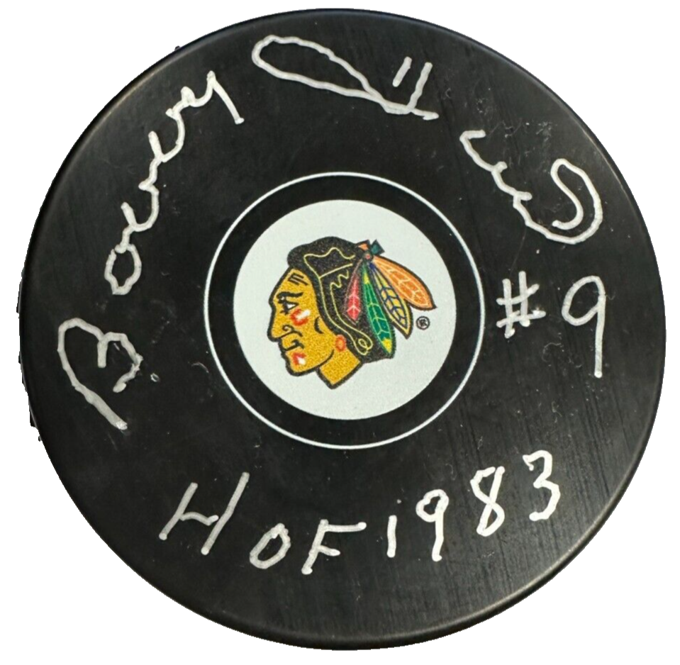 Bobby Hull Autographed Chicago Blackhawks Hockey Puck JSA W/ HOF 1983