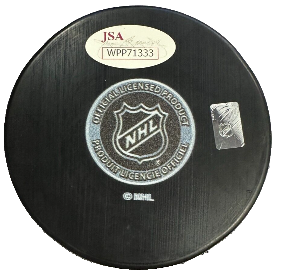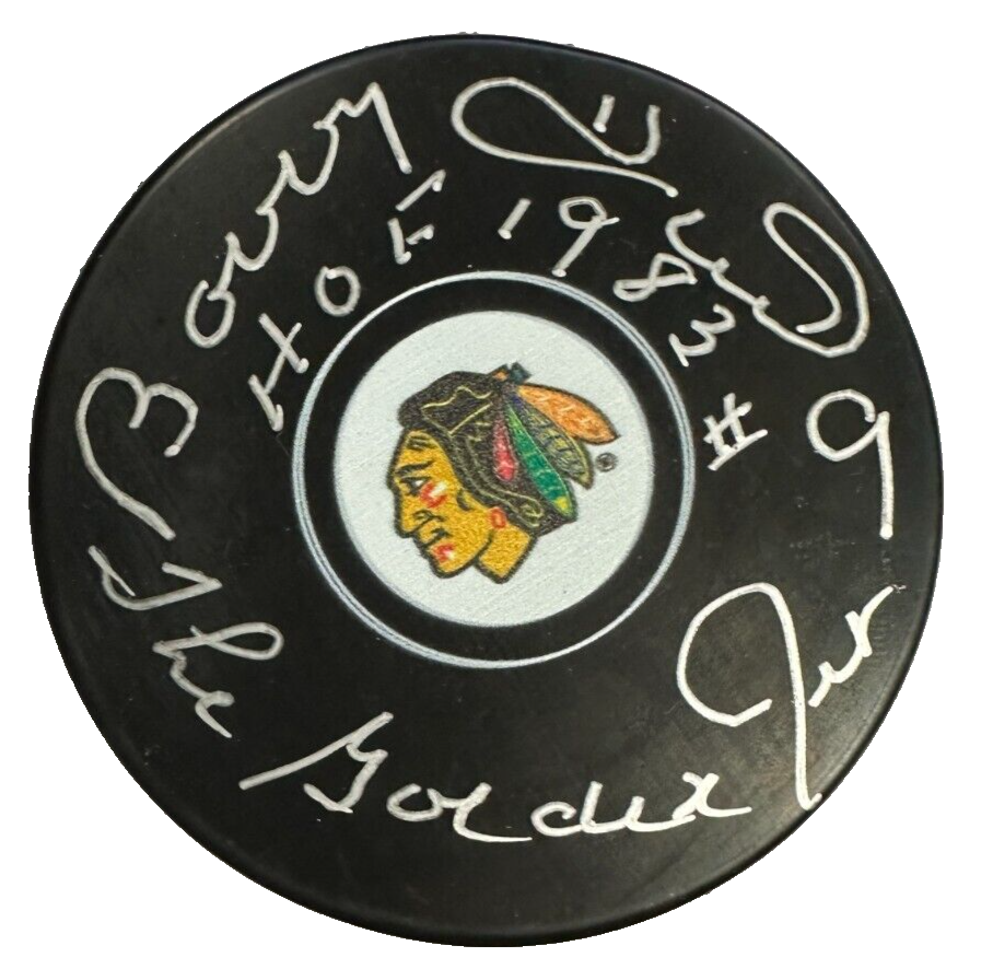Bobby Hull Autographed Chicago Blackhawks Puck JSA W/ HOF 1983 & Golden Jet