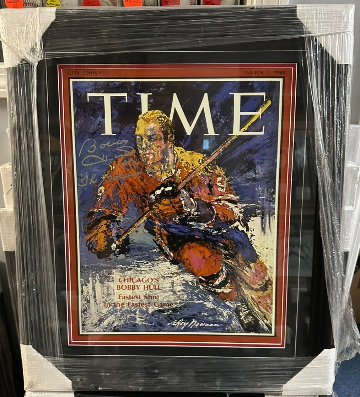 Bobby Hull Signed Time Magazine 16x20 Cover Photo W/ Golden Jet Insc Framed HOF