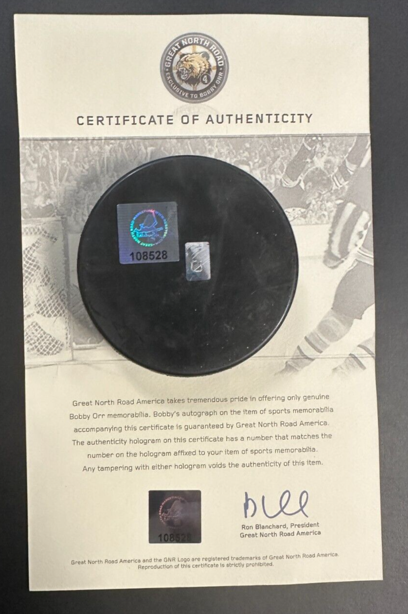 Bobby Orr Autographed Boston Bruins Old Logo Hockey Puck HOF GNR