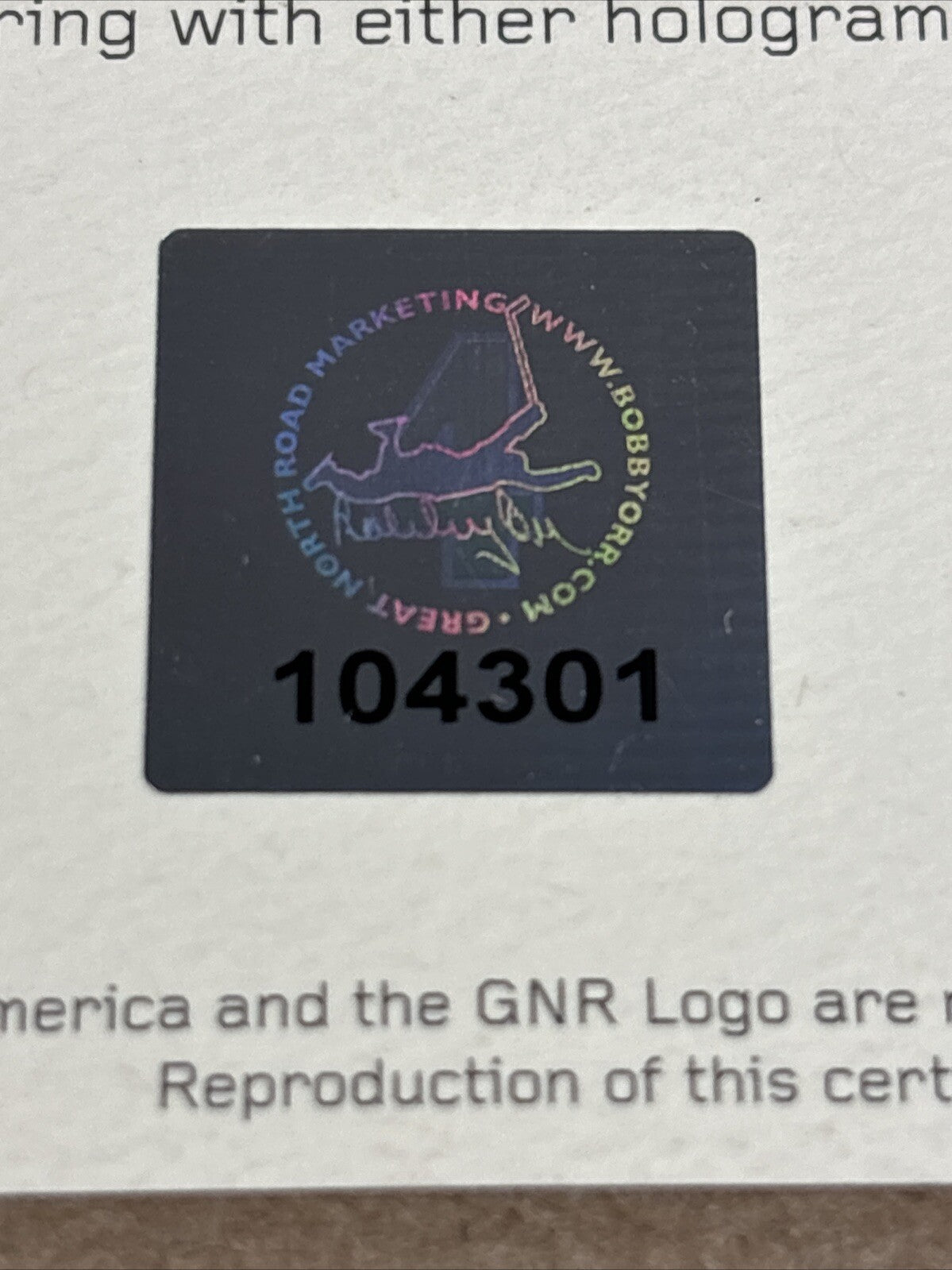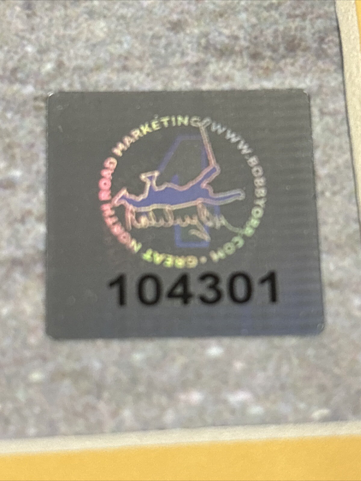 This incredible 8x10 photo captures a momentous occasion in Bobby Orr's illustrious hockey career. The photo is signed by Orr himself and comes with authentication from Great North Road, ensuring its authenticity. This original piece is perfect for any avid sports memorabilia collector or fan of the Boston Bruins. Frame measures 16x20