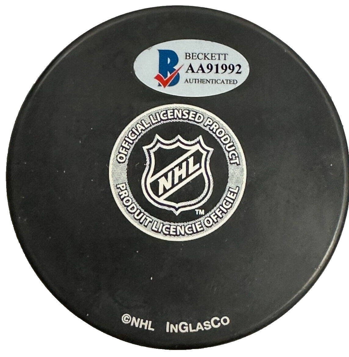 We're offering this Boston Bruins Hockey Puck Autographed by former Star Bobby Schmautz. It's in nm condition and it comes with a COA & Matching Hologram Issued by BAS Beckett Authentication Services and his signature is guaranteed to be 100% authentic. We do have multiple pucks signed by Bobby so the puck that you receive might not be the exact puck in the photo. It will be shipped in a plastic display square, and we will combine on shipping for similar items!